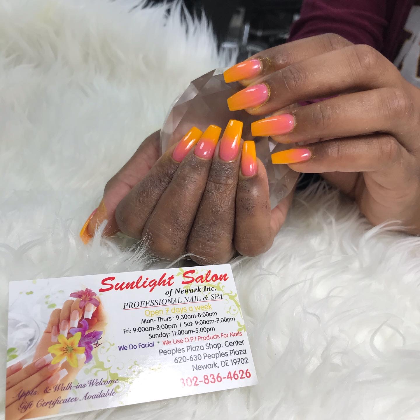 Sunlight Salon LLC is a gem in People's Plaza, offering fantastic salon operations with a focus on artistry, cleanliness, safety, and sanitation. The talented staff is highly trained in various services, including fake nail applications, pedicures, and manicures. Customers have praised the outstanding service, kindness, and courtesy of the staff, with specific mentions of Huey, Tina, Tony, and Jen for their exceptional work. Many have enjoyed the soothing Spa Pedicure, which is worth the visit, and the relaxing atmosphere of the salon. While there have been some mixed results with gel manicure durability, the salon is known for being clean and inviting, with super reasonable prices. It is a great spot for a walk-in visit, offering services like foot massages, and is open 7 days a week. The team is attentive, ensuring a comfortable experience for all, including those with limited mobility. New customers have expressed their love for Sunlight Salon, noting the friendly staff who make everyone feel like family.