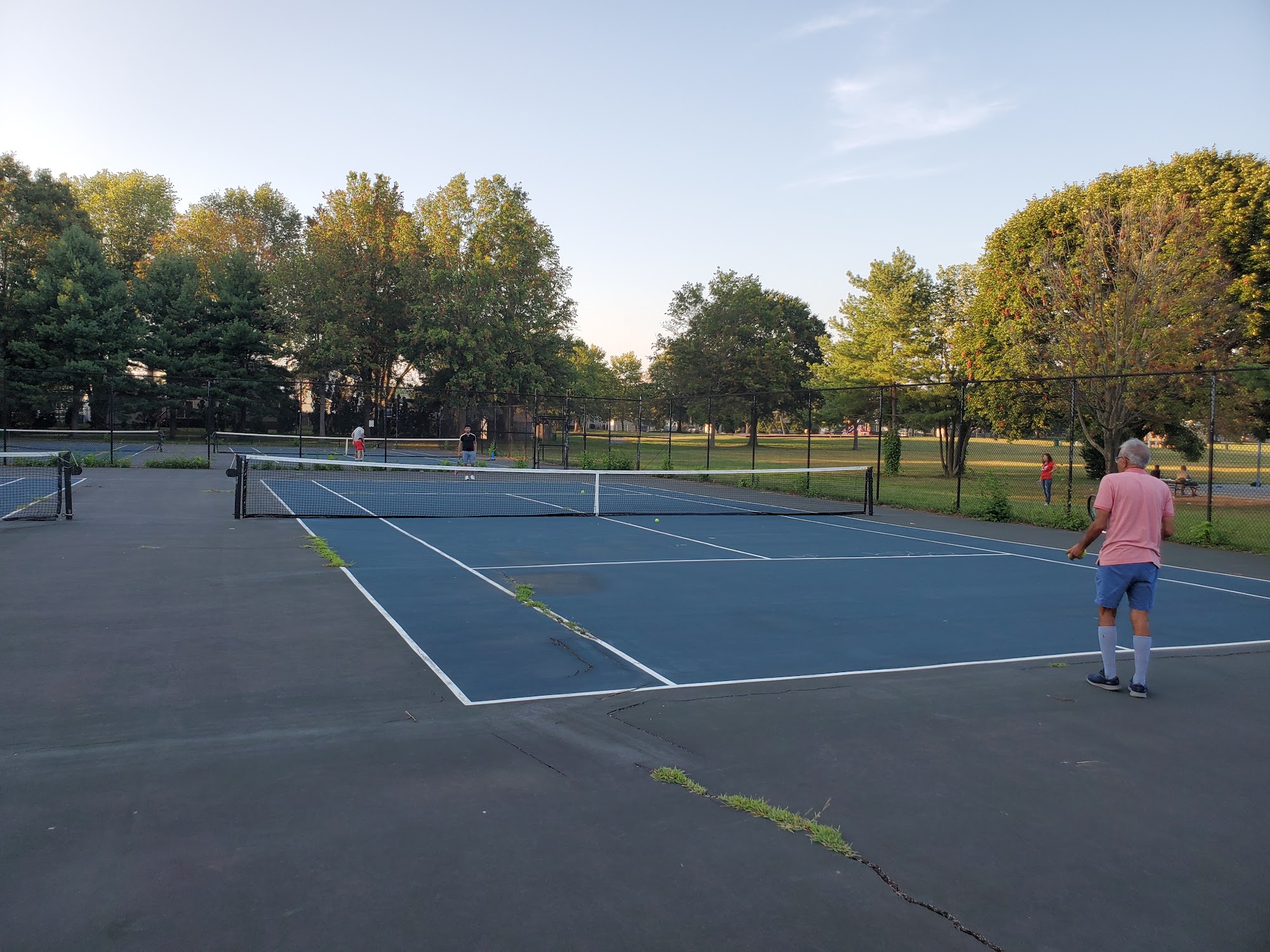 Weiss Park is described as a best walking park, clean and beautiful. It is kid friendly and has many caps on the ground. The park has baseball fields, basketball courts, soccer fields, hockey and tennis courts, making it perfect for sporting events. A community park with a decent trail around the edge, a jungle gym, and lots of space to run around. There is one picnic area with grilling and plug outlets, but more cooking grills and more restrooms would help. Dogs enjoy the paved path and the grass for walking and playing.