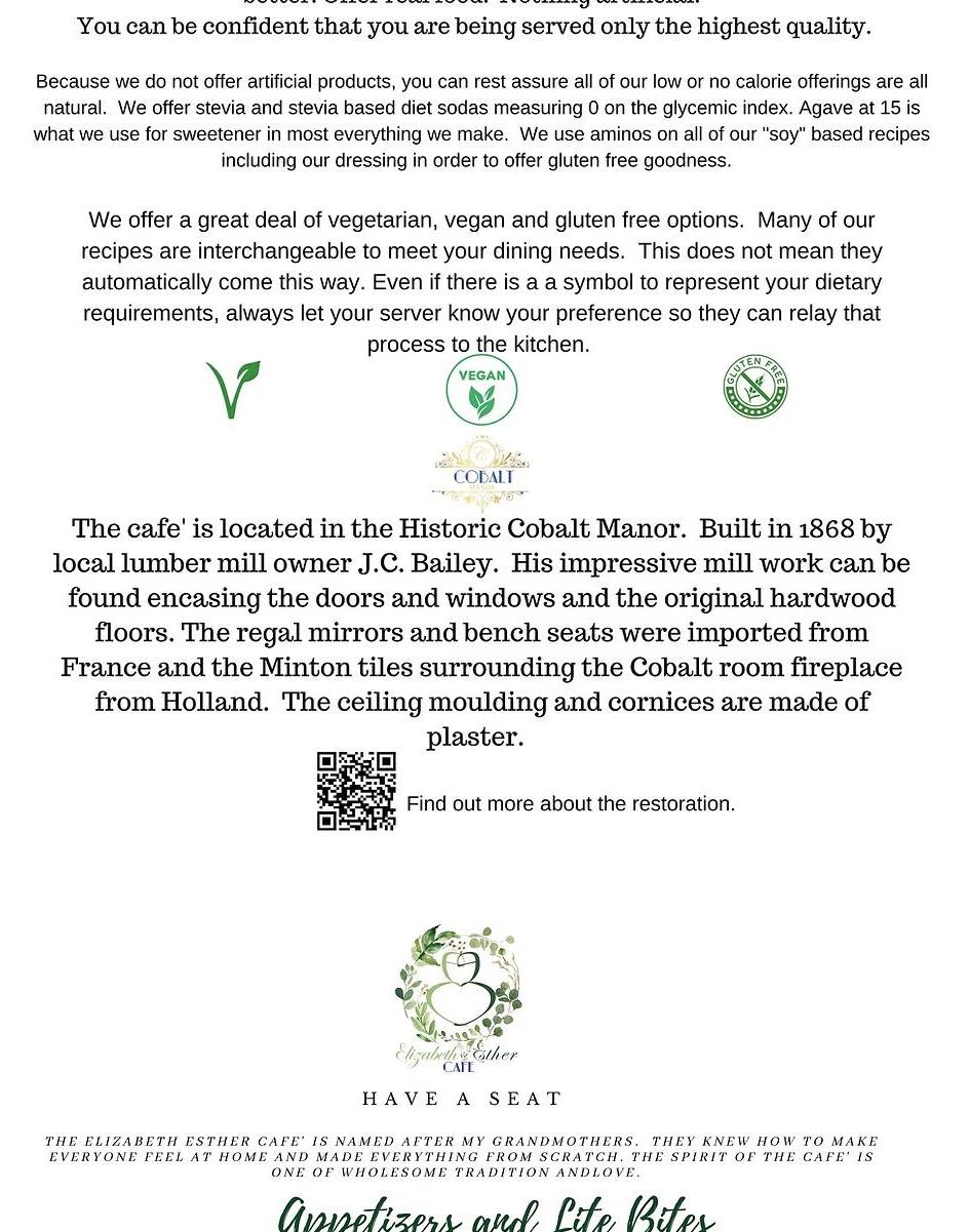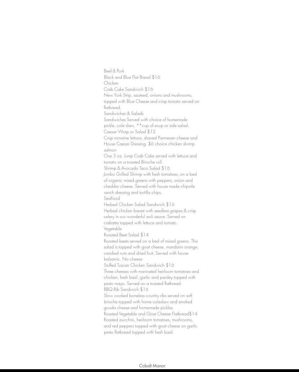 Cobalt Manor is a versatile venue known for hosting memorable events and offering a pleasant dining experience. The indoor space is suitable for gatherings of around 50 people, making it ideal for weddings and receptions. Many guests praise the venue’s beautiful decorations, especially during the holidays, and its well-prepared setup that reflects the hosts’ personalities. The staff, including Lindsay and Vicky, are highly appreciated for their outstanding service, attention to detail, and willingness to help with every aspect of events, ensuring guests feel relaxed and cared for. They work within budgets and help customize events, making each celebration special and stress-free. The food at Cobalt Manor receives positive remarks, with guests describing the wedding cuisine as some of the best they've had, and the reception food as great. The menu offers interesting options like French onion ravioli and pumpkin martinis, and many find sharing dishes enjoyable. Brunch experiences are also highly recommended, praised for their effectiveness and tasty offerings. The atmosphere is described as great, with a fun and festive environment that includes good music and a reliable DJ during weddings. Overall, Cobalt Manor is a highly recommended venue for weddings, receptions, and dining, appreciated for its beautiful setting, attentive staff, and delicious food.