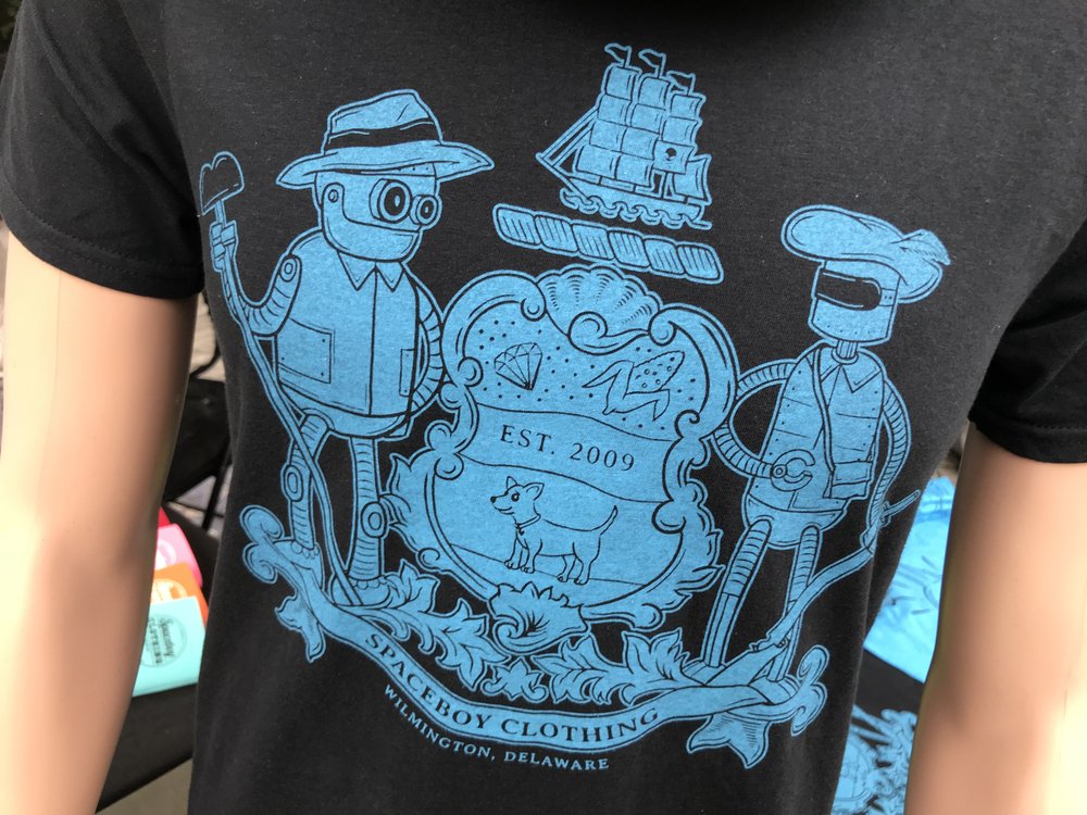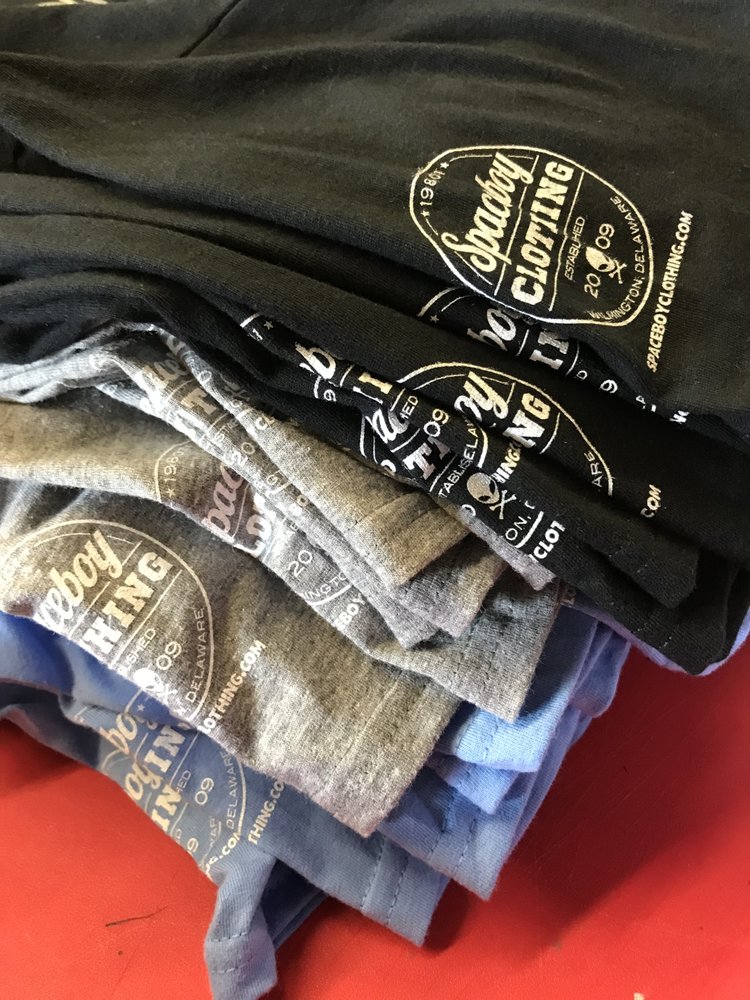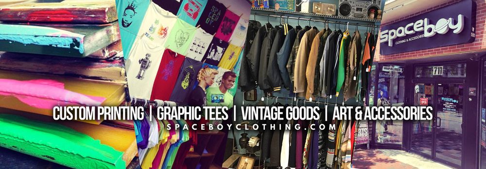 Spaceboy Clothing started in 2009. We are a clothing boutique, art space & custom print shop based in Wilmington, Delaware. We sell a cool mix of vintage wares, hand printed graphic t-shirts and fun accessories. Equipped with an onsite printing studio, we produce our own line of clothing and offer custom screen print & graphic design services as well. Design & place custom orders right on our website and be sure to follow us on facebook for discounts and event info!
