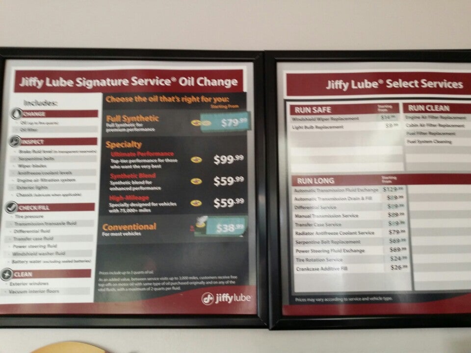 Jiffy Lube provides fast, convenient automotive maintenance services, from oil changes to tire rotation, following manufacturer recommendations. The business is known for fast and efficient service. Reviews describe the staff as superb, friendly, super nice, and courteous, with service that is thorough and professional. Many customers report an amazing experience, noting the explanation of charges was detailed and prices were affordable. The service is quick, and in one instance, a critical repair was completed efficiently during a difficult situation. Some customers note a dislike for the frequent upsales during service. Overall, customers indicate they would return and highly recommend Jiffy Lube for its efficient and reliable vehicle care.