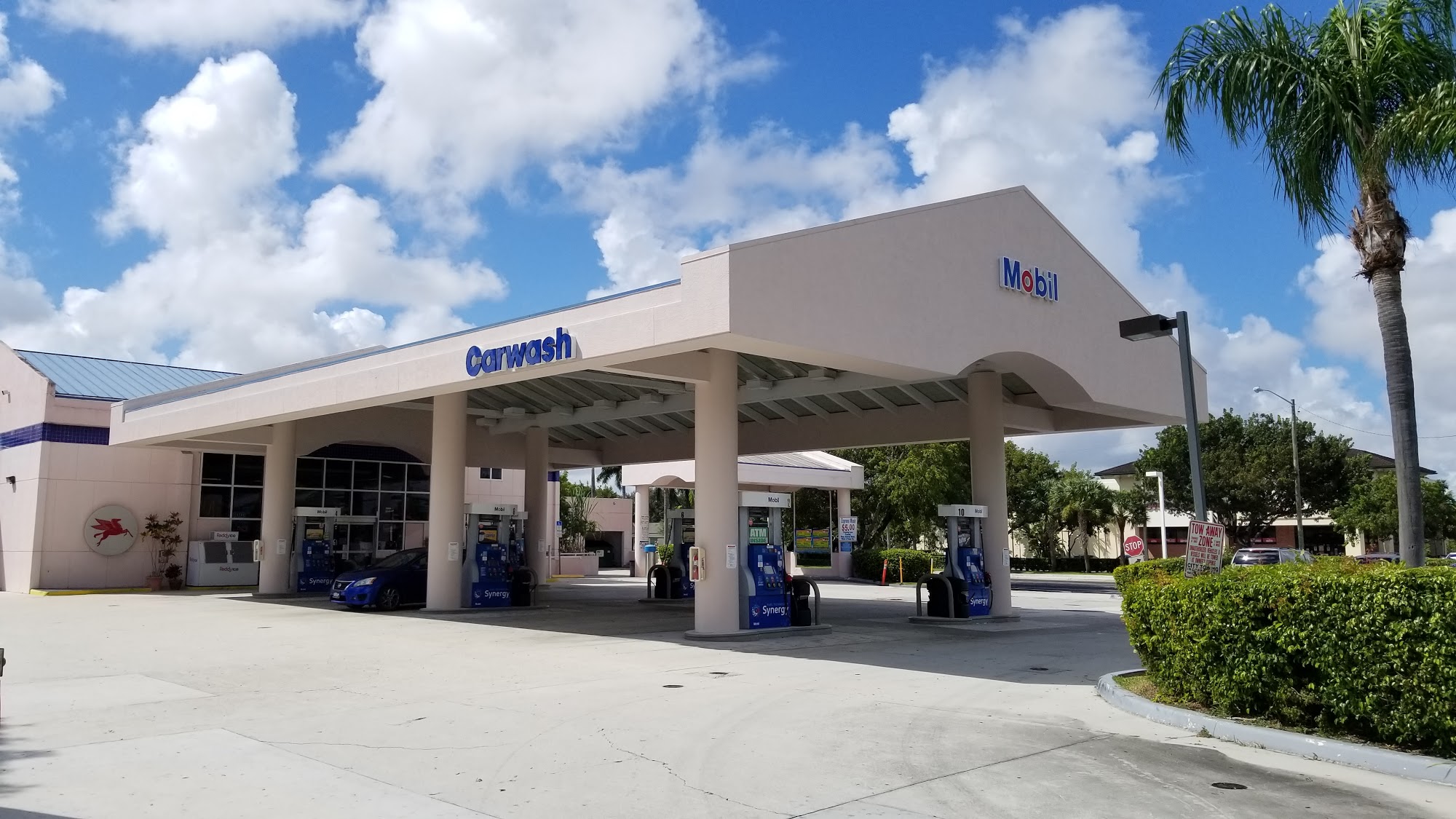 Mobil is a great place with a pleasant atmosphere and lots of choices. It offers gas, snacks, sodas, good coffee, hot food, wines, and cigarettes. The car wash is second to none and a great value, with friendly and thorough service. For a set price, they wash, vacuum, clean all windows, and do the tires—the whole nine yards. Customers have been coming for years, noting the service is a little pricey but you get what you pay for, leaving cars always clean and neat.