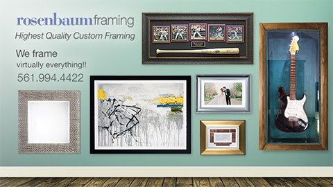 Rosenbaum Framing is a full-service, family owned, custom framing business in Boca Raton. Our team has nearly 40 years of experience of providing world-class workmanship, creative designs, and the finest quality materials to our clients. We specialize in custom framing our client's most treasured possessions including diplomas, sports memorabilia, precious family photographs, wedding photos, and more. Our expert framers use an impressive selection of mouldings along with the most creative framing options to provide you with framing that exceeds your expectations.