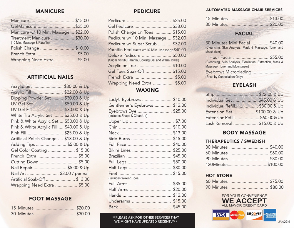 I always get my nails (Pink & White Powder Acrylics) done here & my Gel pedicures. They last me at least three weeks. Always happy with their work after coming here from NJ….have tried various place.