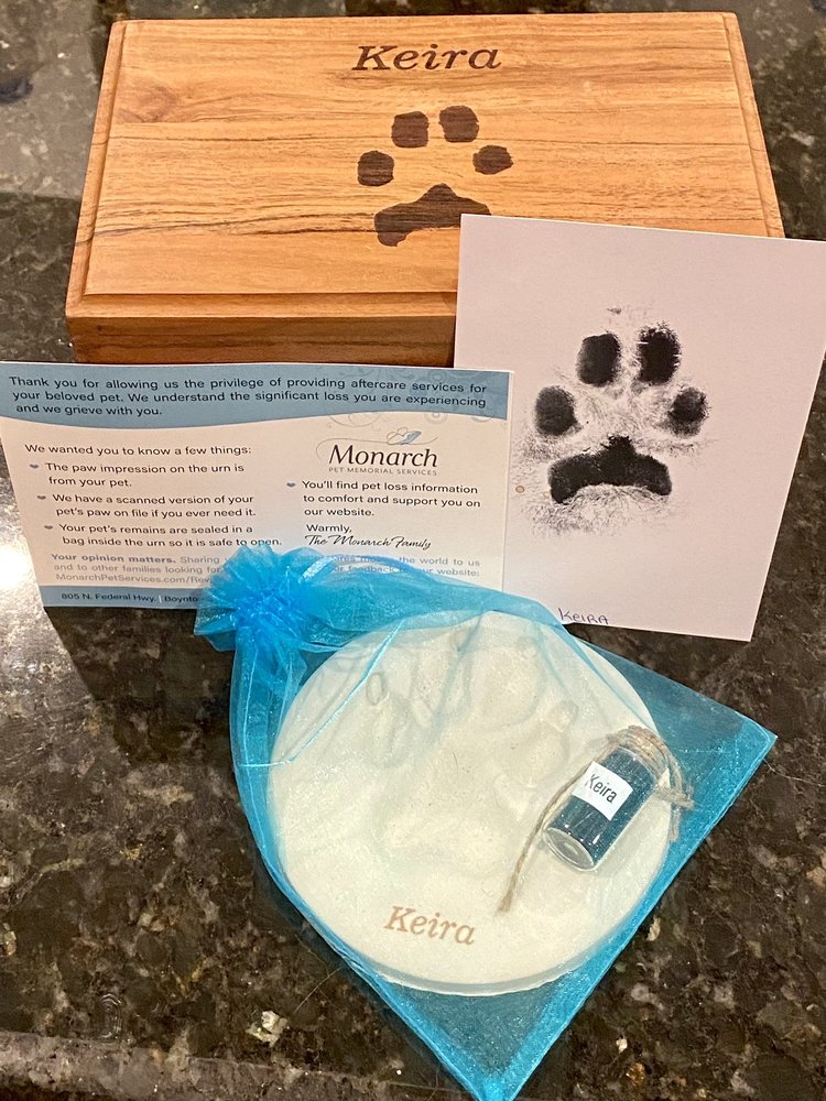 Had my cat of 21 years taken care of by Monarch. Very impressed with the service and attention to detail. Rest in peace my precious one until we meet again.