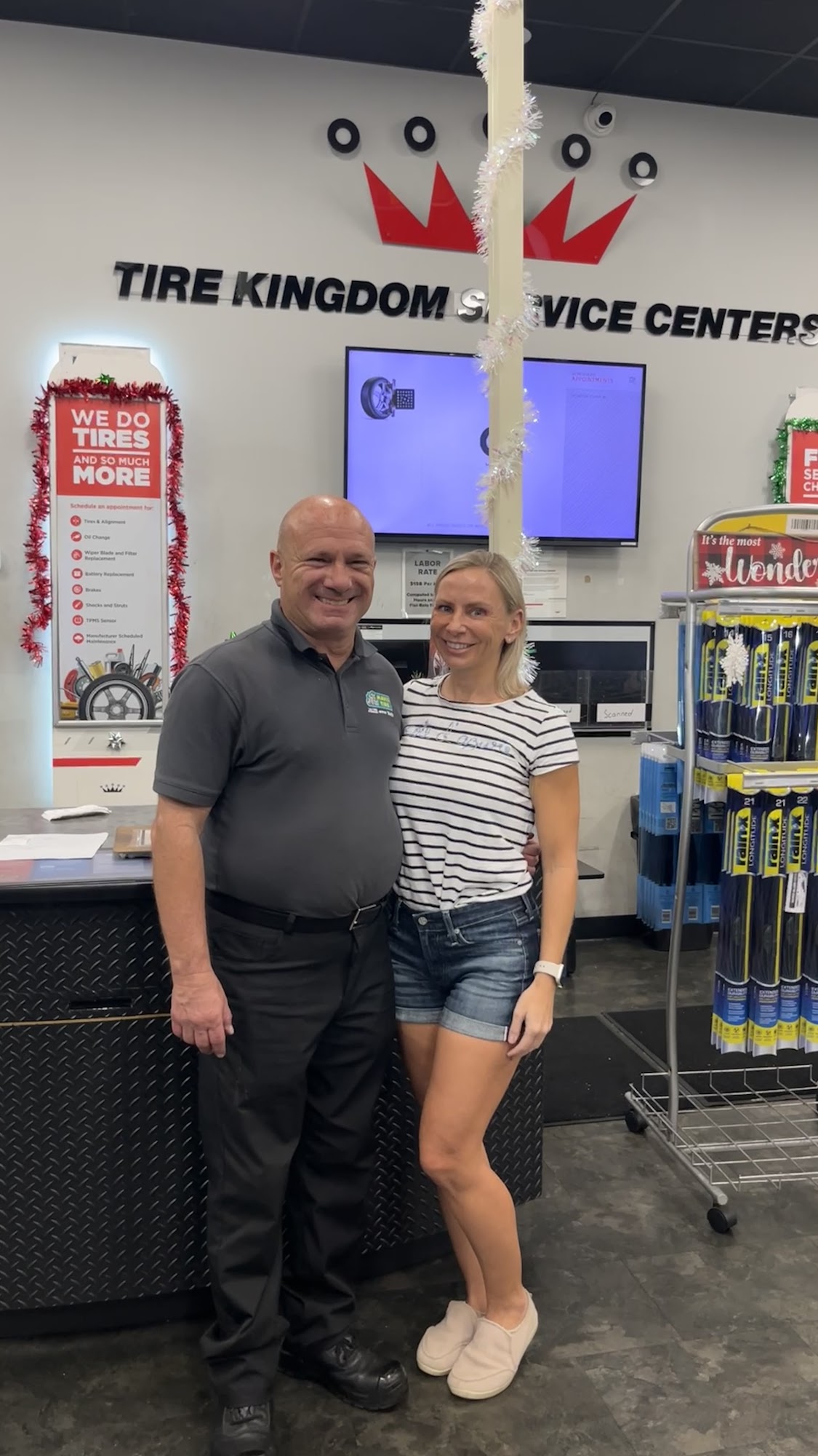 We had a great experience at Tire Kingdom. John was polite, friendly, efficient and appreciated that we were repeat customers. So grateful… please give him a bonus!!!