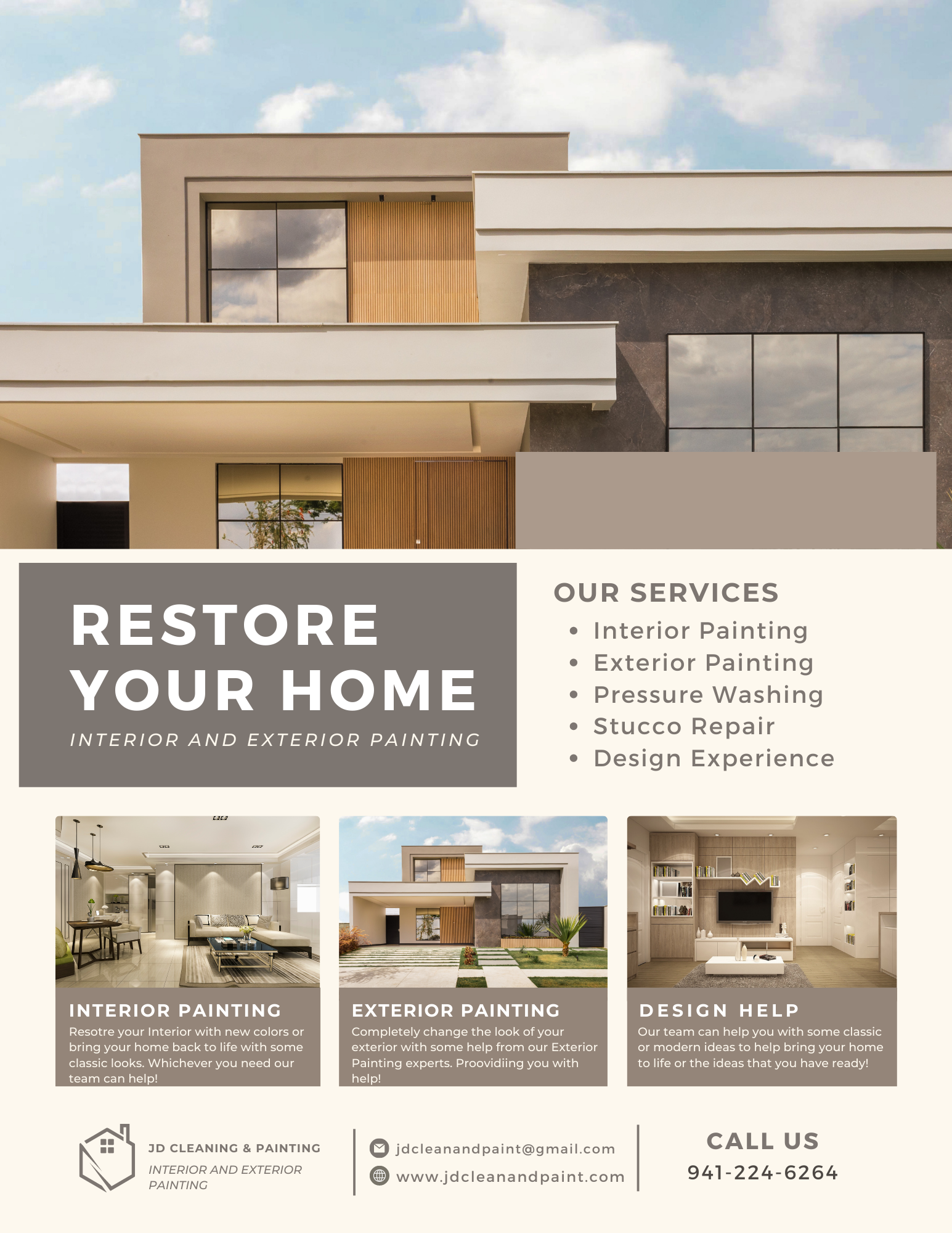 JD Cleaning & Painting is a family-owned business that specializes in interior and exterior house painting, roof cleaning, and stucco repairs. Serving the communities of Bradenton, Lakewood Ranch, Sarasota, Parrish, and Venice, FL, they are dedicated to enhancing the appearance and functionality of homes and businesses. Customers have praised the team for their professionalism, thoroughness, and attention to detail. Devin and his crew consistently go above and beyond, providing clear estimates and timelines, and ensuring that clients are satisfied with the results. JD Cleaning & Painting offers a variety of services, including house washing, window cleaning, HOA cleaning, pressure washing, roof coating, and waterproofing. Reviews highlight the company's commitment to quality work, reasonable pricing, and respectful service. Many clients express their intention to continue using JD Cleaning & Painting for future projects, feeling confident in recommending them to others. With a focus on protecting and beautifying properties, JD Cleaning & Painting sets a high standard in home care.