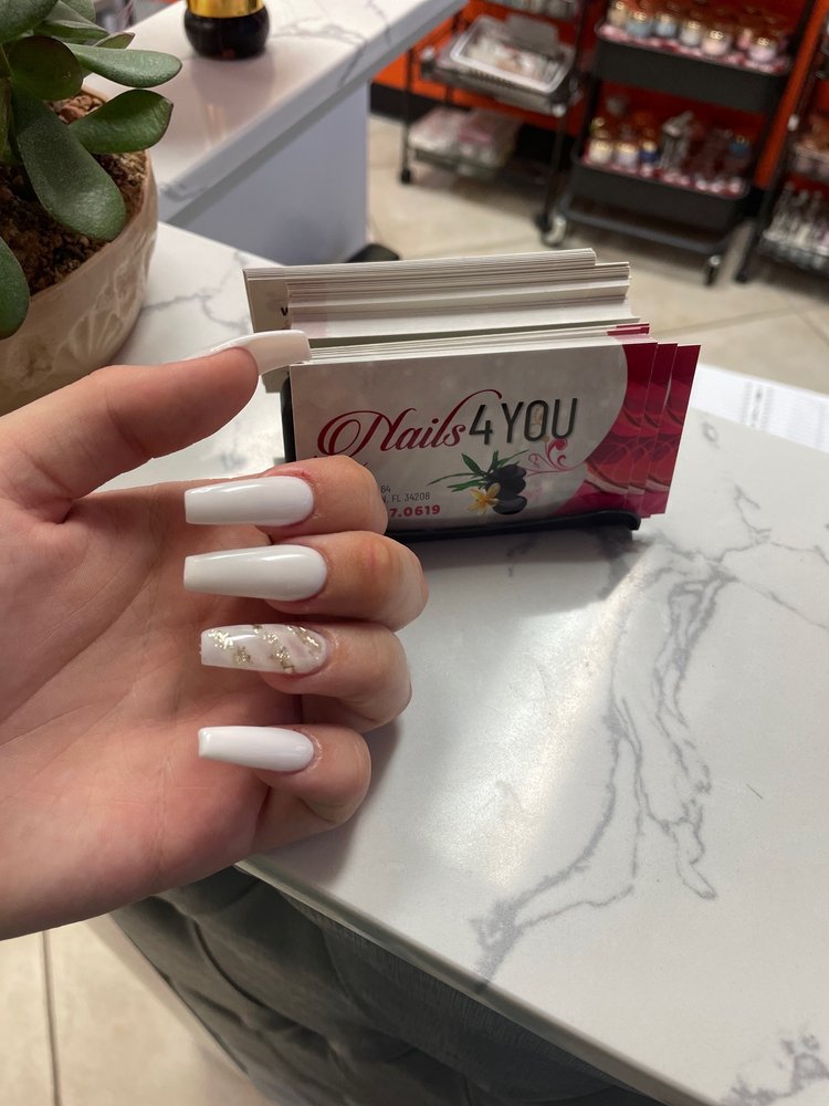 NAILS4YOU, a nail salon located in Bradenton, FL 34208, offers expert services and luxurious treatments, including manicures, pedicures, and waxing. Customers praise the salon's excellent customer service, professional nail care, and friendly, welcoming staff. The salon has undergone recent upgrades, featuring new pedicure spas, tables, and chairs, as well as high-quality acrylic nails and nail designs. Customers are satisfied with their experiences and plan to return regularly for the salon's services. The services are perfect every single time. Everyone is so very nice and they do a great job. It is going to be their new regular for getting nails done. The owner and her husband were very friendly and provided a great experience. She did a wonderful job on SNS Dip French manicure.
