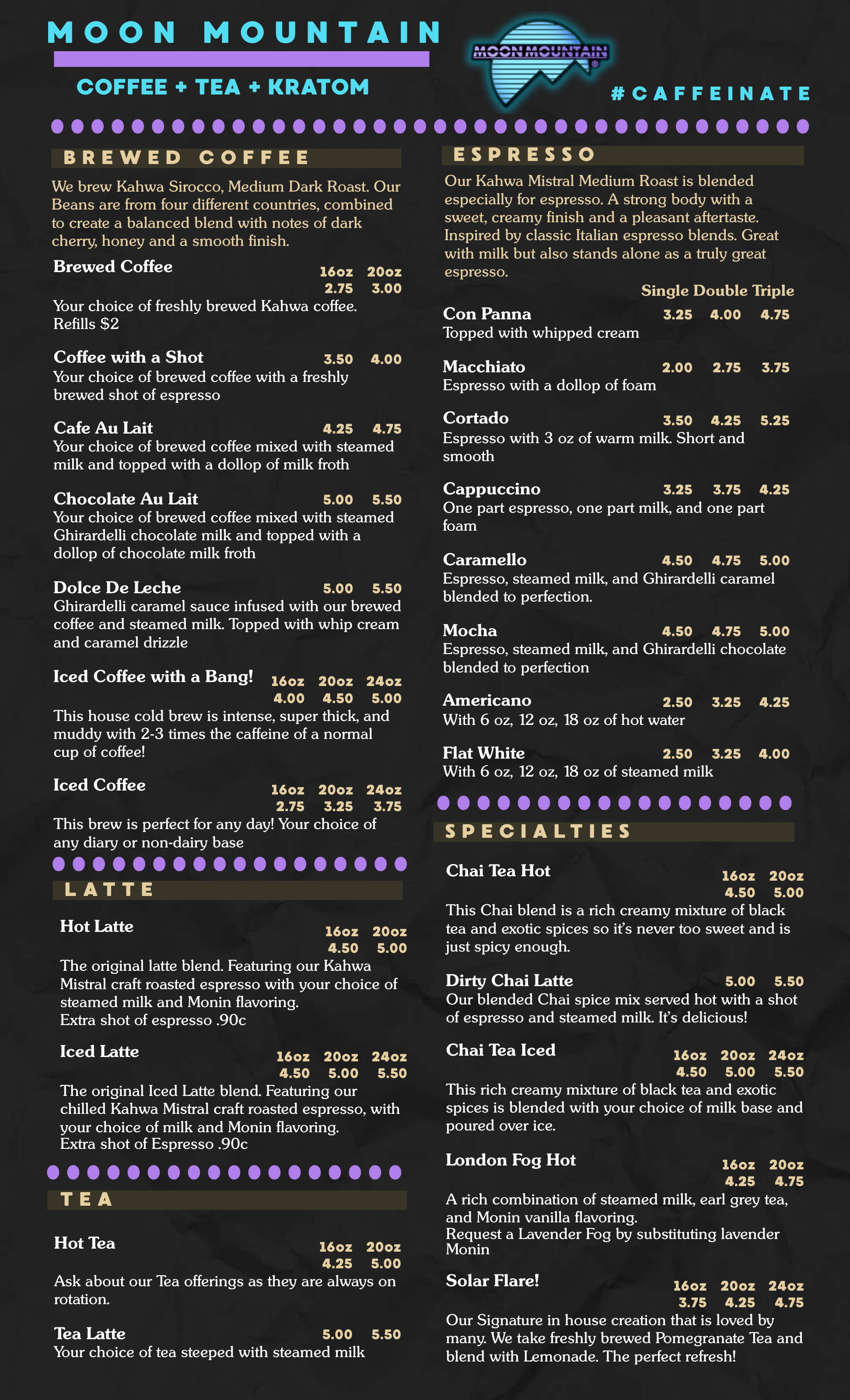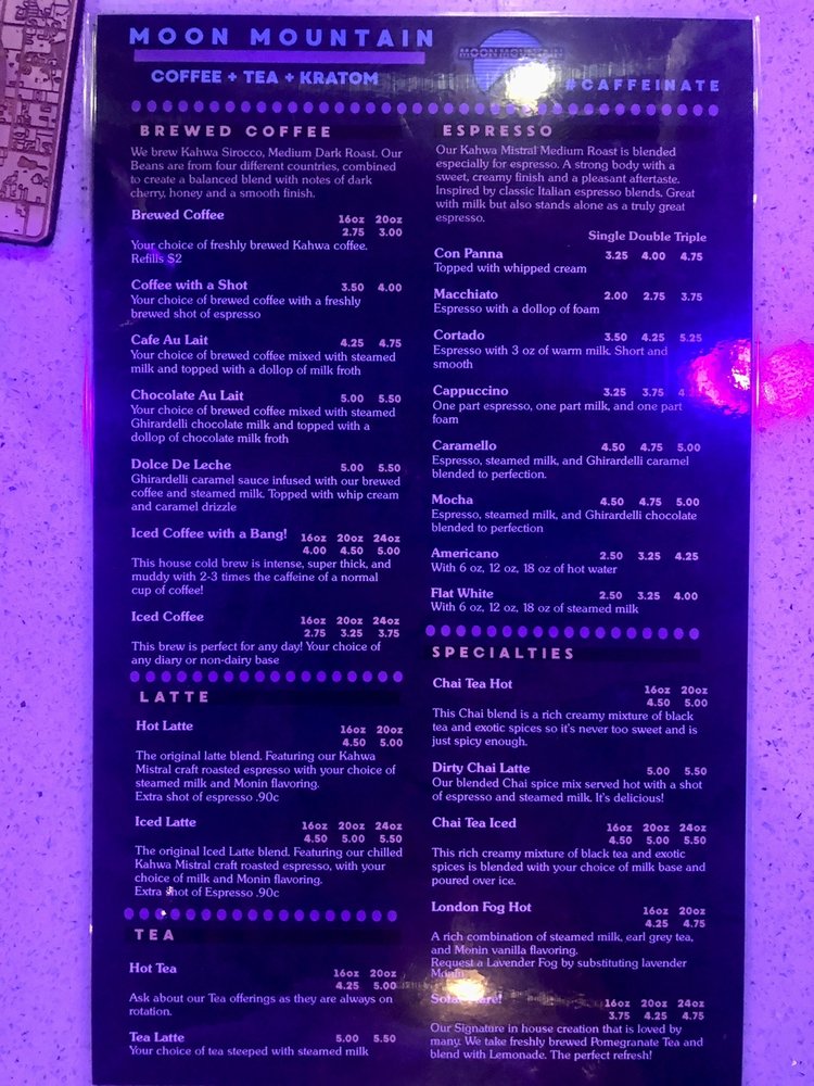 Moon Mountain is the original alternative culture bar and lounge, serving a full range of alternative products and botanical offerings such as vape, kava, coffee, botanical and loose leaf tea, as well as craft beer. They carry top national brands catering to everyone, whether for a quick grab-and-go or a relaxing social experience. Moon Mountain Botanical Bars provide a welcoming atmosphere with ample seating, chill vibes, and free Wi-Fi, known as a social gathering place in the community. Customers describe it as a fun, amazing place with great people and quality products, offering a perfect chill spot with top-notch drinks, including their famous Moon Mountain kratom tea. The business has recently undergone positive changes, with a new team and fresh leadership bringing a grounded, uplifting energy. The crew behind the bar is friendly, knowledgeable, and passionate, creating a calm, artistic, and welcoming environment. Visitors praise the incredible customer service, consistent quality, and the overall growth and improvement of Moon Mountain.