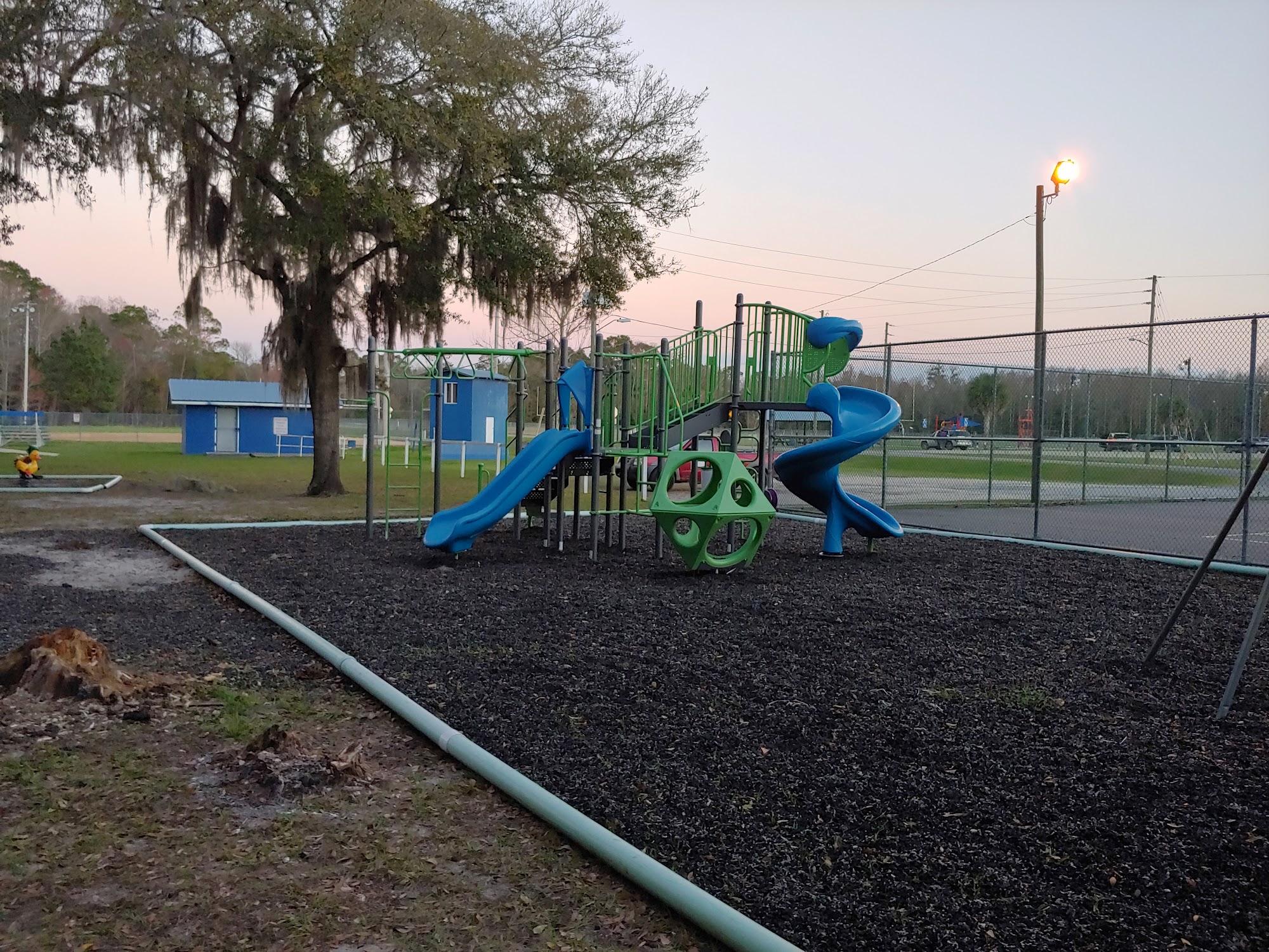 They need gates on both side and baby swings on each side as well. The mulch needs re-spread but otherwise a decent park/playground.