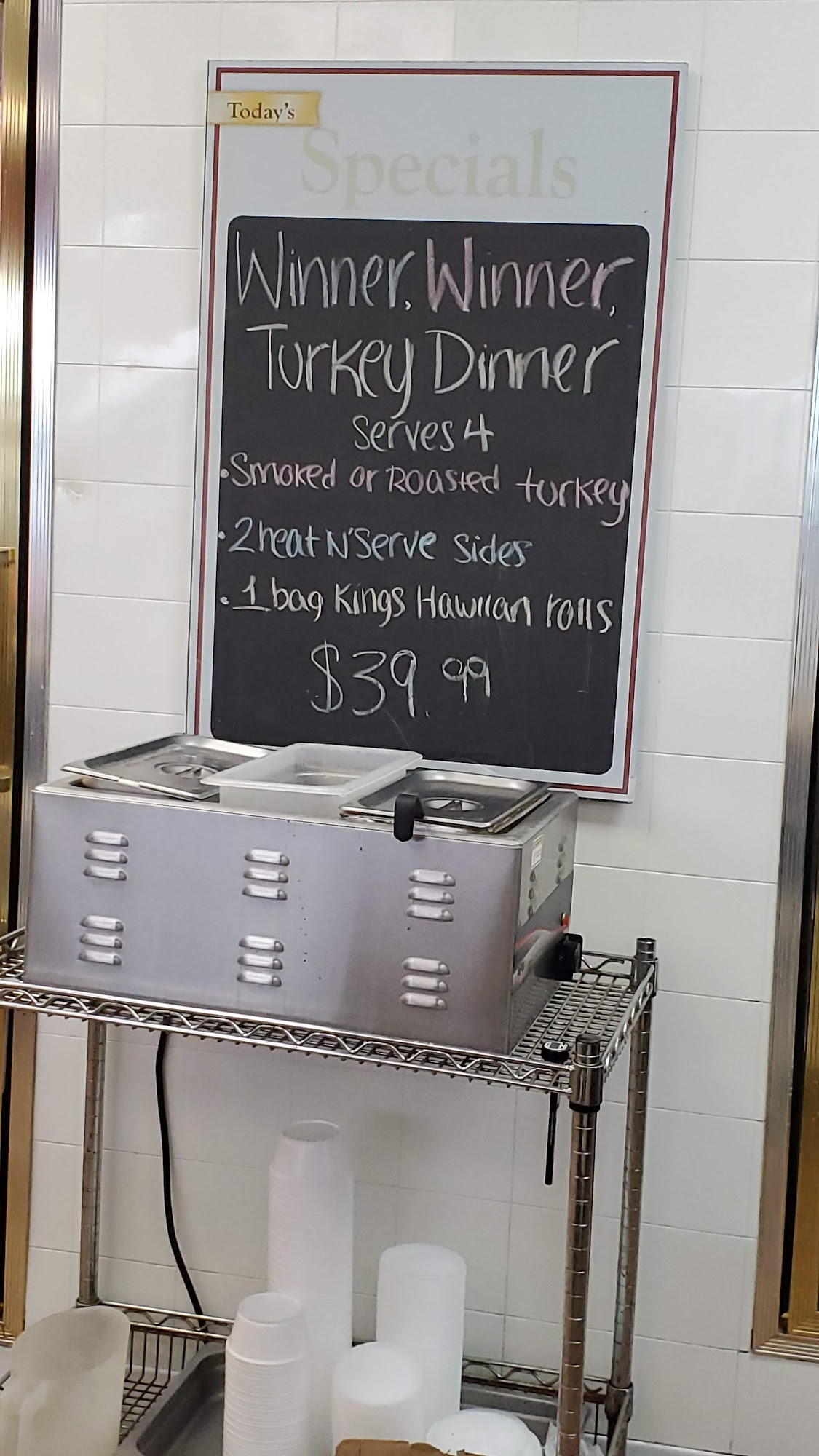 Placed my order online. Walked in and picked up my order right away. The new system seems to cut the waits at Holiday time.