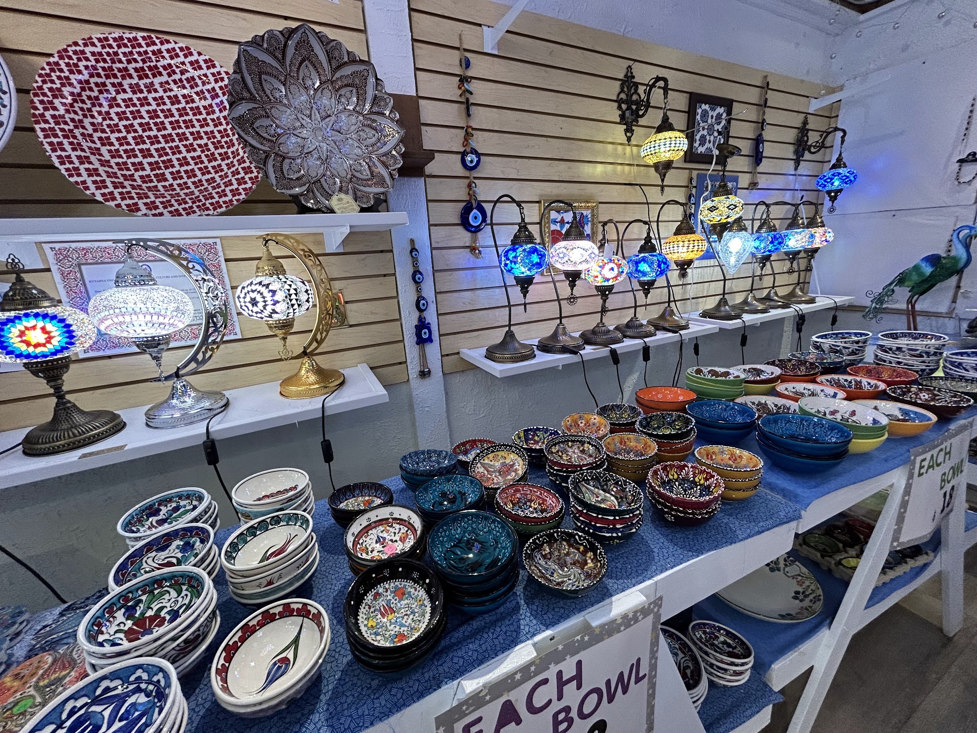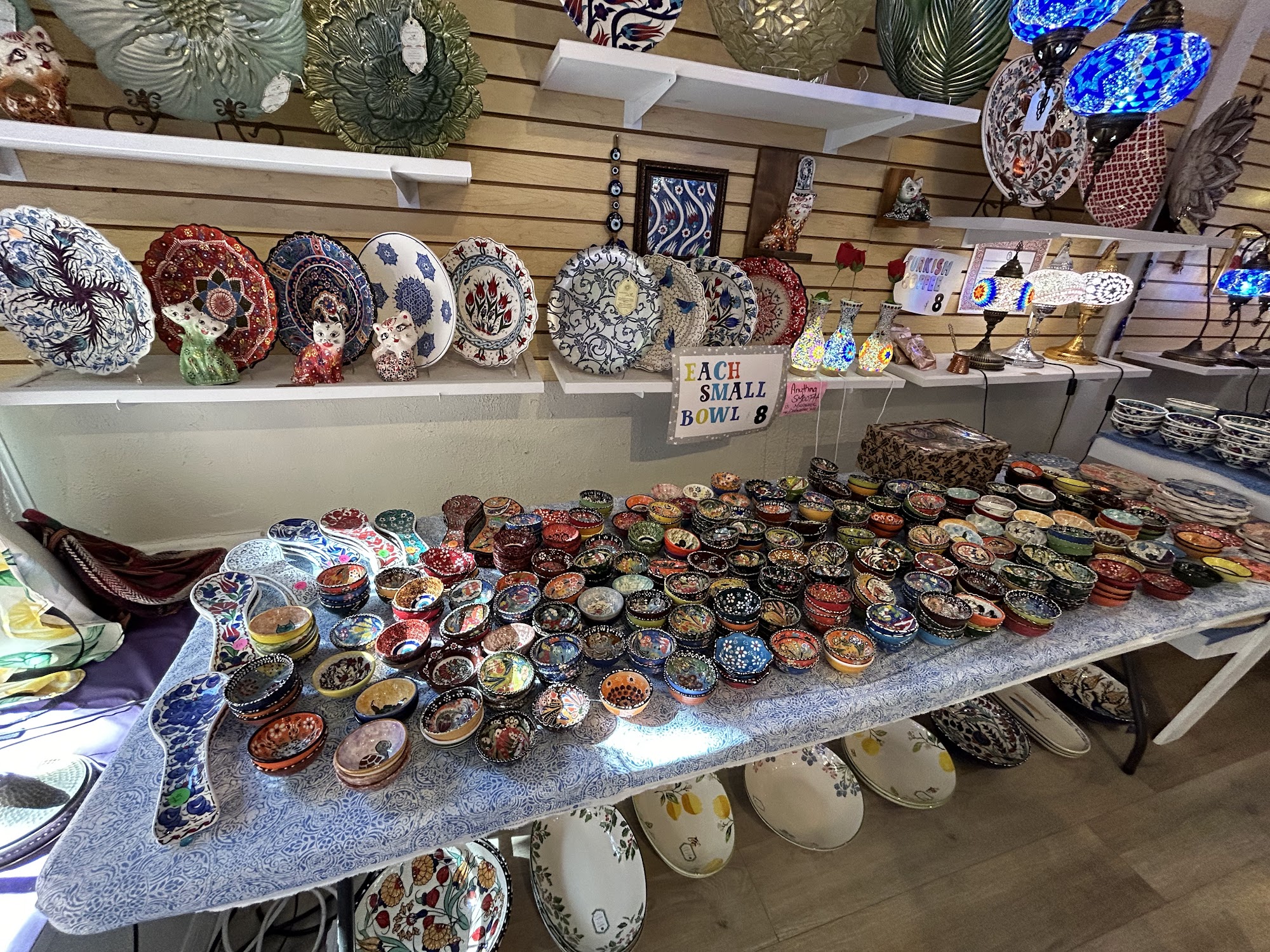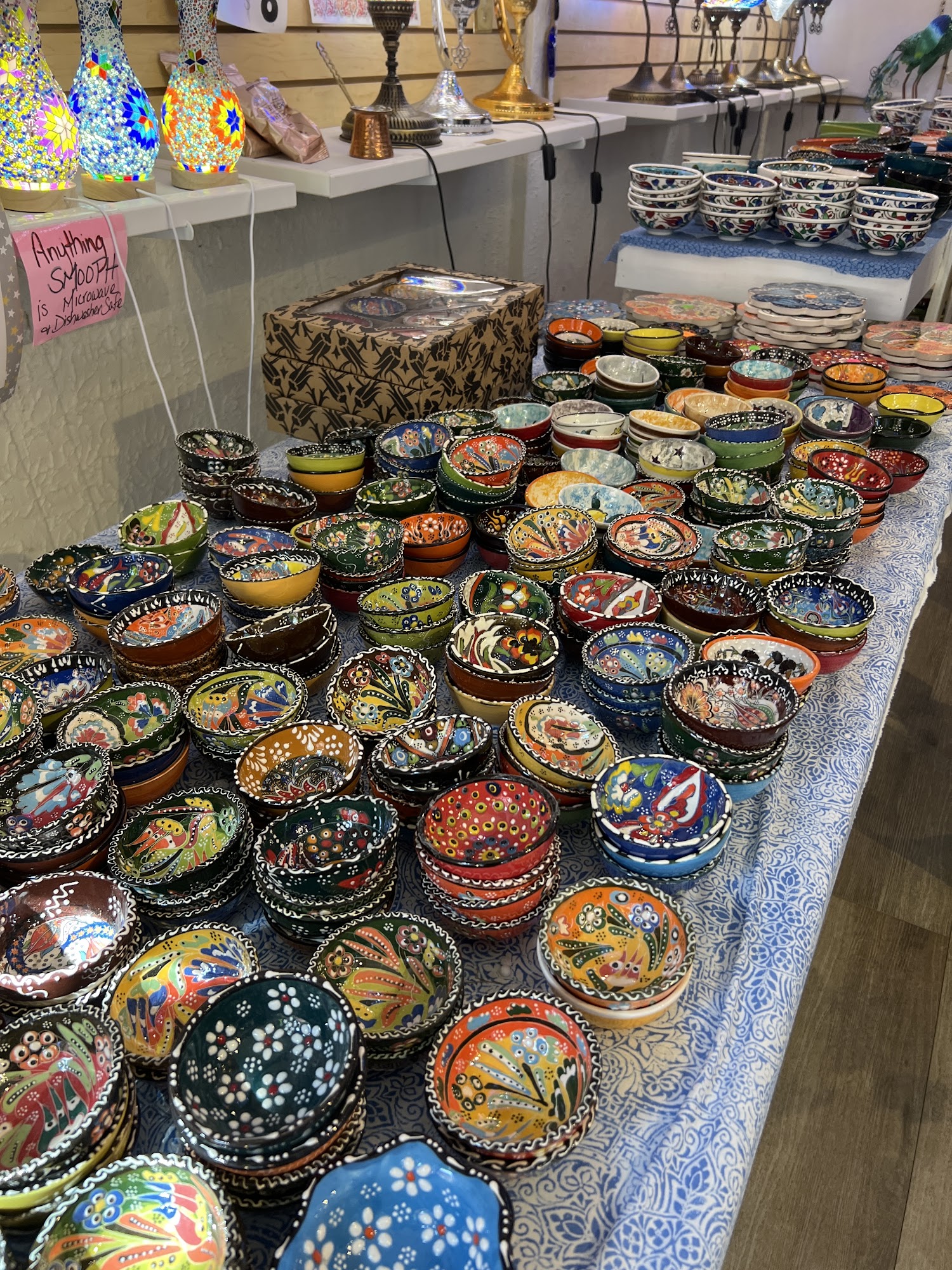 My family has been coming here for years. Our favorite store for colorful hand, painted bowls, plates, etc. The lights are amazing craftsmanship. A big plus, sitting for Turkish coffee.