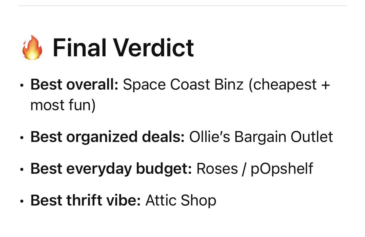 I love Space Coast Binz! The kindest family owns this business. Clean and organized! So grateful for all the great deals.