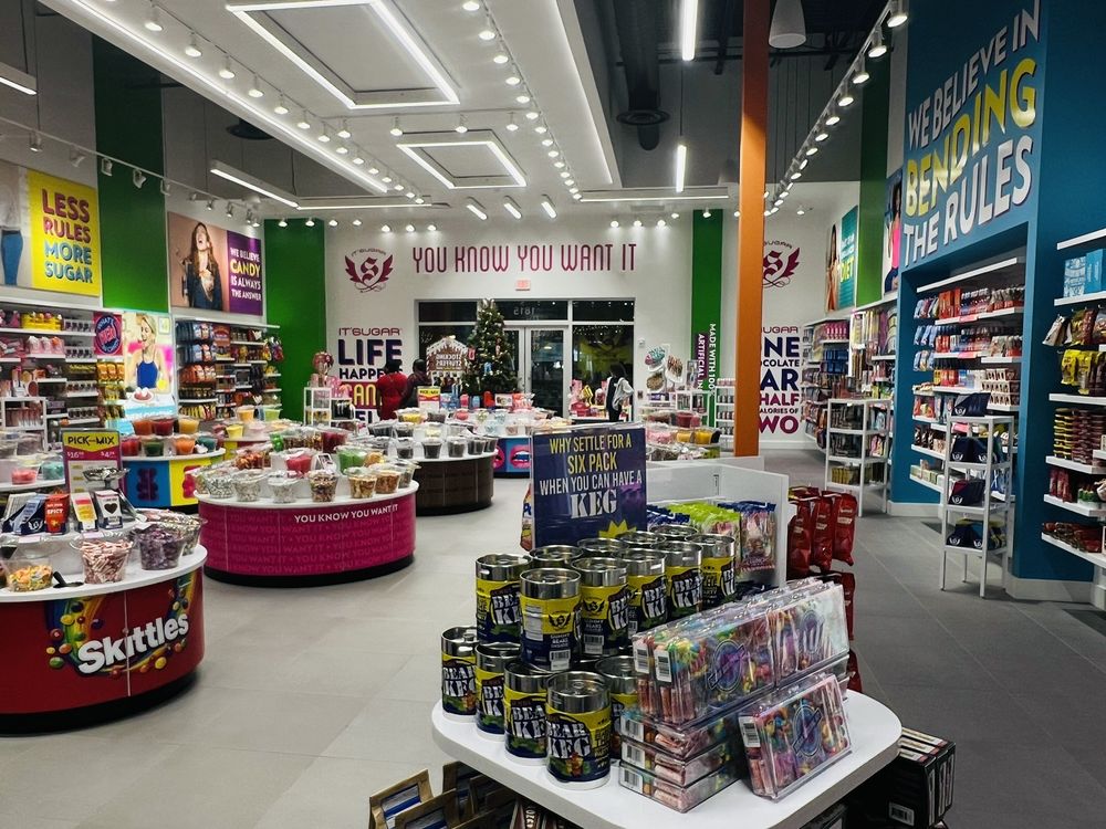 IT'SUGAR at Dania Pointe is a sweet tooth heaven and a magical place. It is an excellent spot for a snack or for finding gifts, with a very impressive variety of sweets. The store is very nicely presented and features popular culture characters. It is described as incredibly magical, making visitors travel to their childhood and creating a magical experience for little ones. The store is very welcoming, and many note it is a great place for kids to visit. The staff provides outstanding and amazing customer service, with helpful, patient, and sweet employees. Customers report easy service and feel the team is efficient and customer oriented, even helping to save money. Many state they will be returning and recommend others come visit to fill bags with delicious candy.