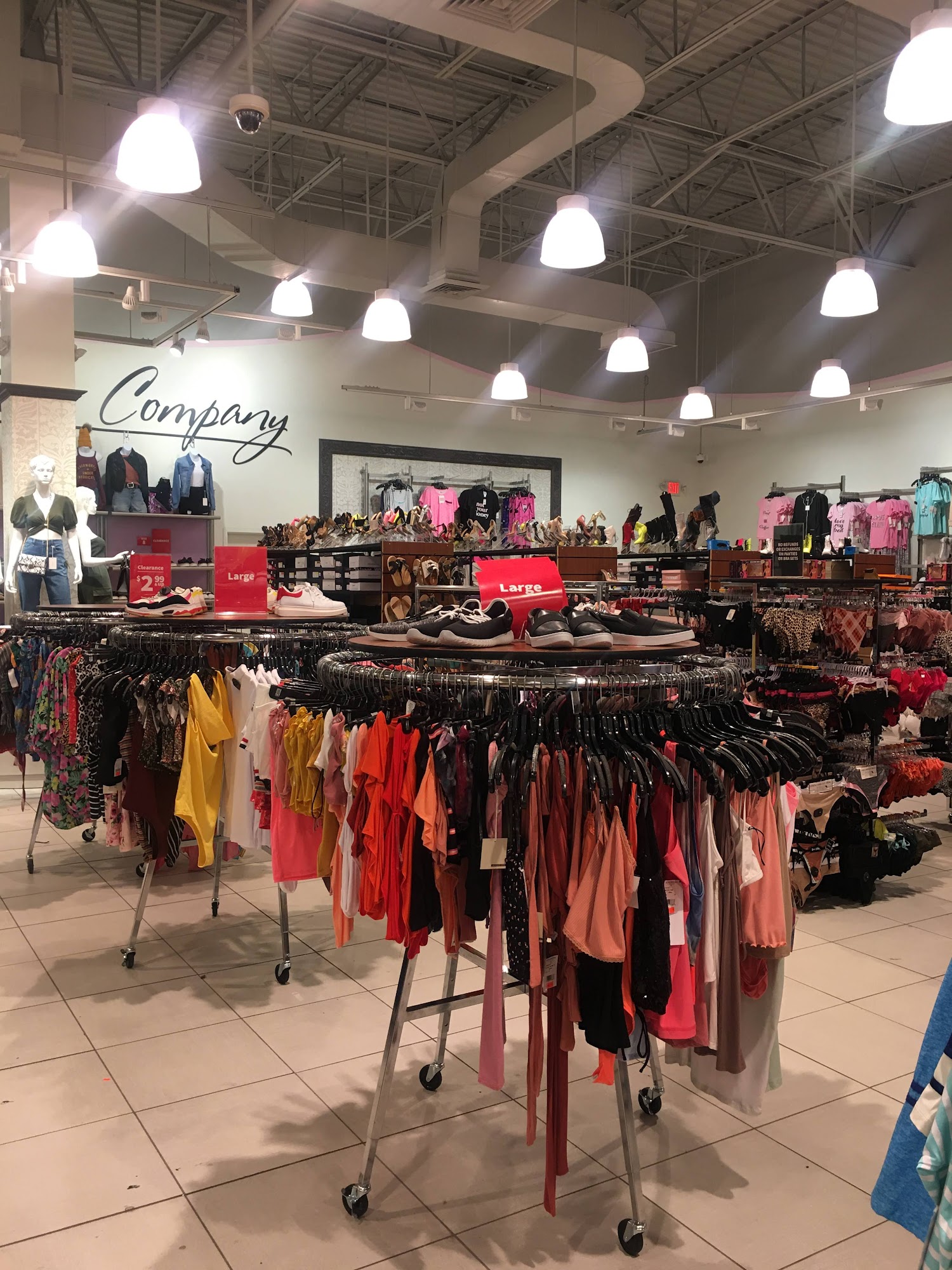 Affordable items. No dressing room to try the clothes.