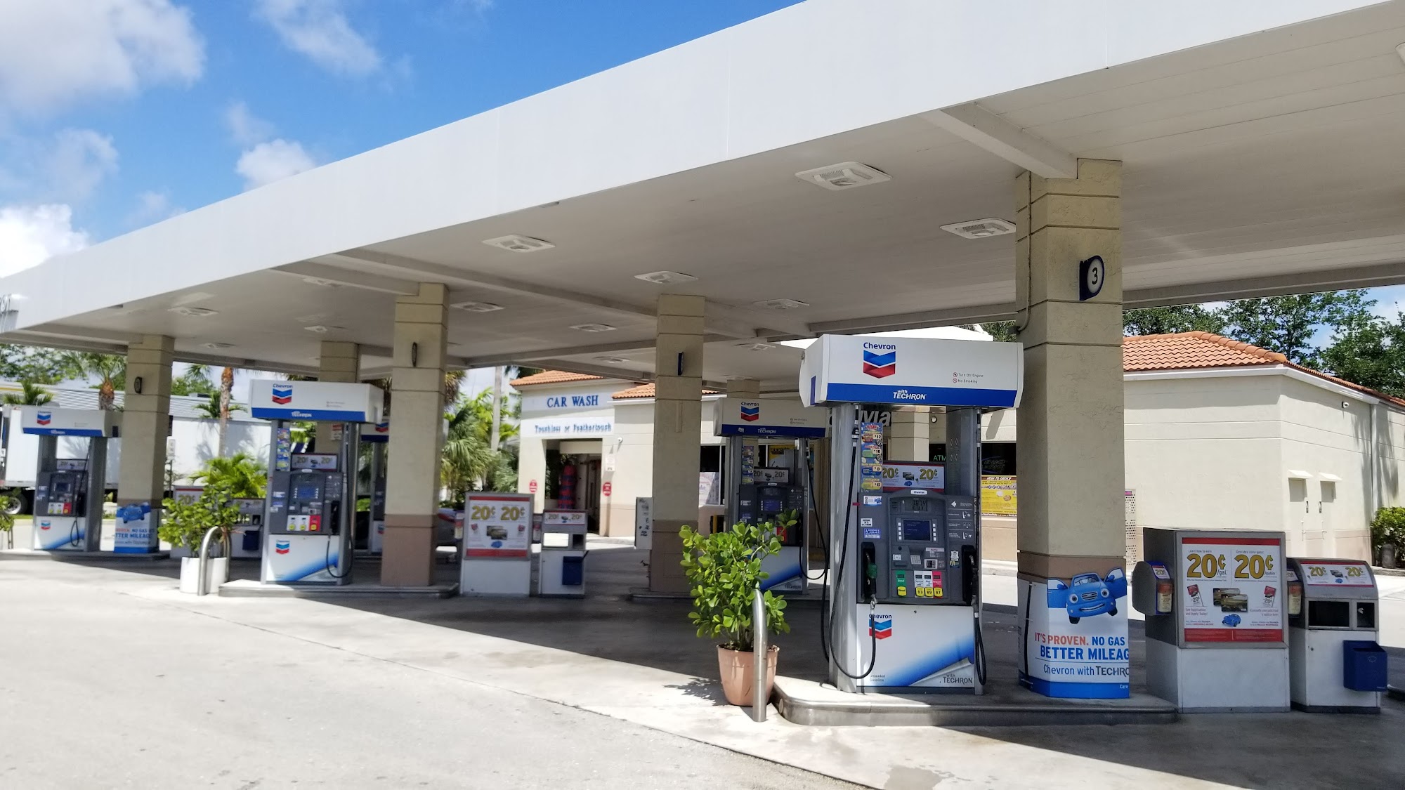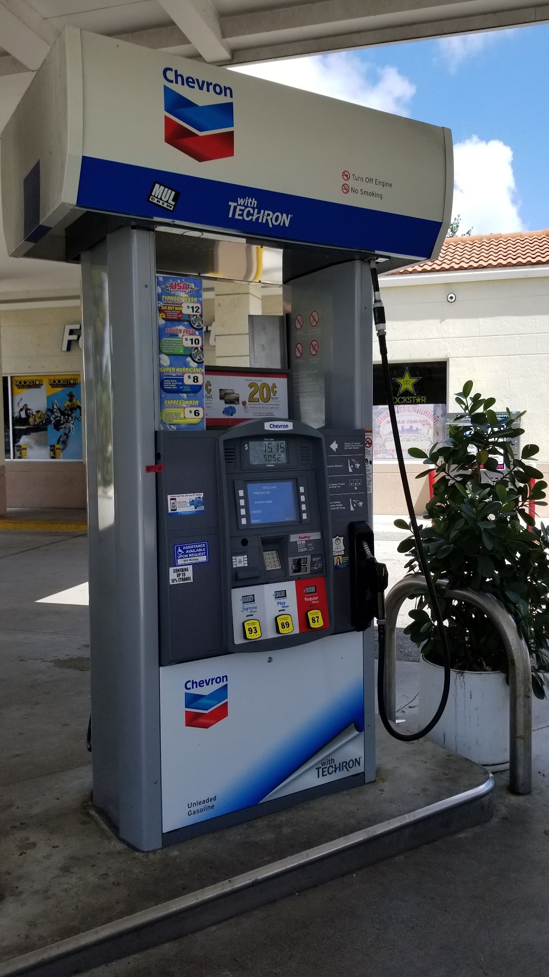 Chevron Deerfield Beach offers a car wash and gas station. The clerk is polite and professional, assisting customers when the wash stops and even fixing the machine herself. Customers find the gas a little higher but convenient, especially for those on dialysis treatments. Employees are pleasant and keep the store running, and the station carries Juul pods. Prices are on par with nearby stations.