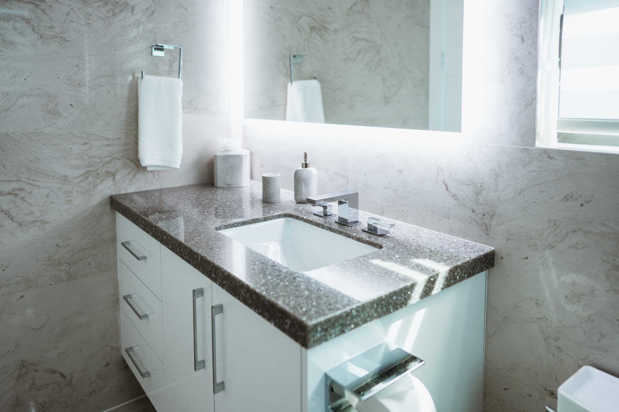 I Went at DISTINT StoneWorks for a Small Project. I Was Very Impress with the Knowledge of the People there, and Also with the Technology they Have. With that Combination, Becomes Impossible that Finished Work by them, don’t be Perfect! (I am in the Business of “Renew BathRooms”.)