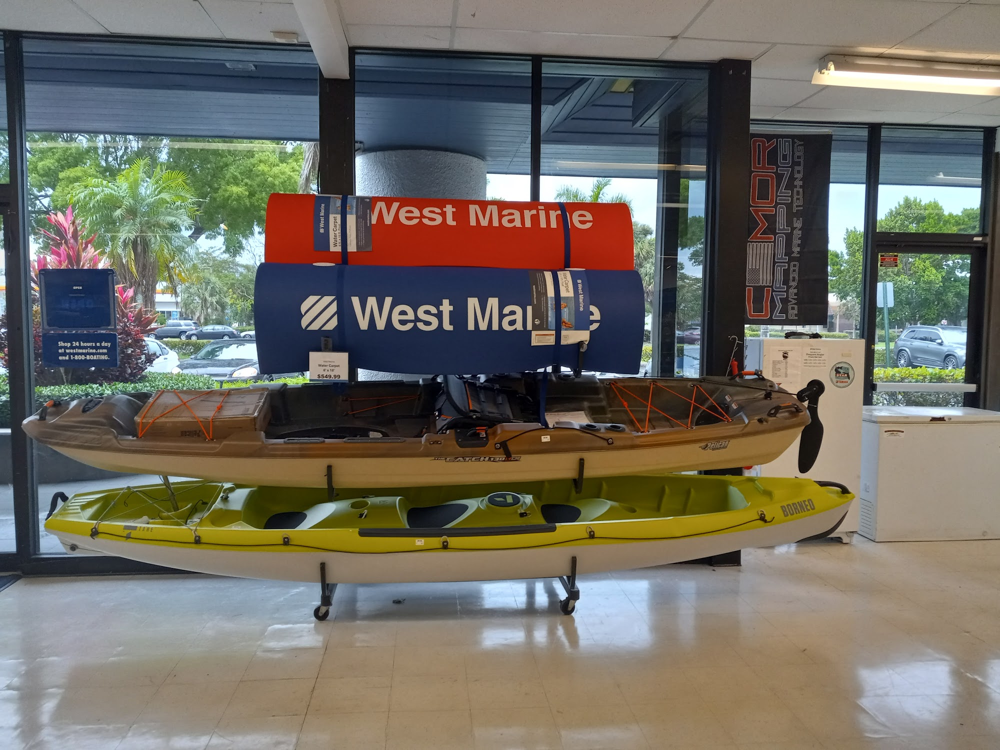 West Marine is a boating and fishing store with multiple locations. The store is pristine and carries lots of boat products, including hard-to-find hardware, fishing equipment, rods, reels, and offshore bait. It also has a small but nice selection of clothes and great prices on items like kayaks. The staff is very helpful, friendly, and knowledgeable, often taking customers right to what they need and educating them on their options. While sometimes sold out of specific items, they provide helpful alternatives. Customers report a wonderful shopping experience and highly recommend it for marine needs.