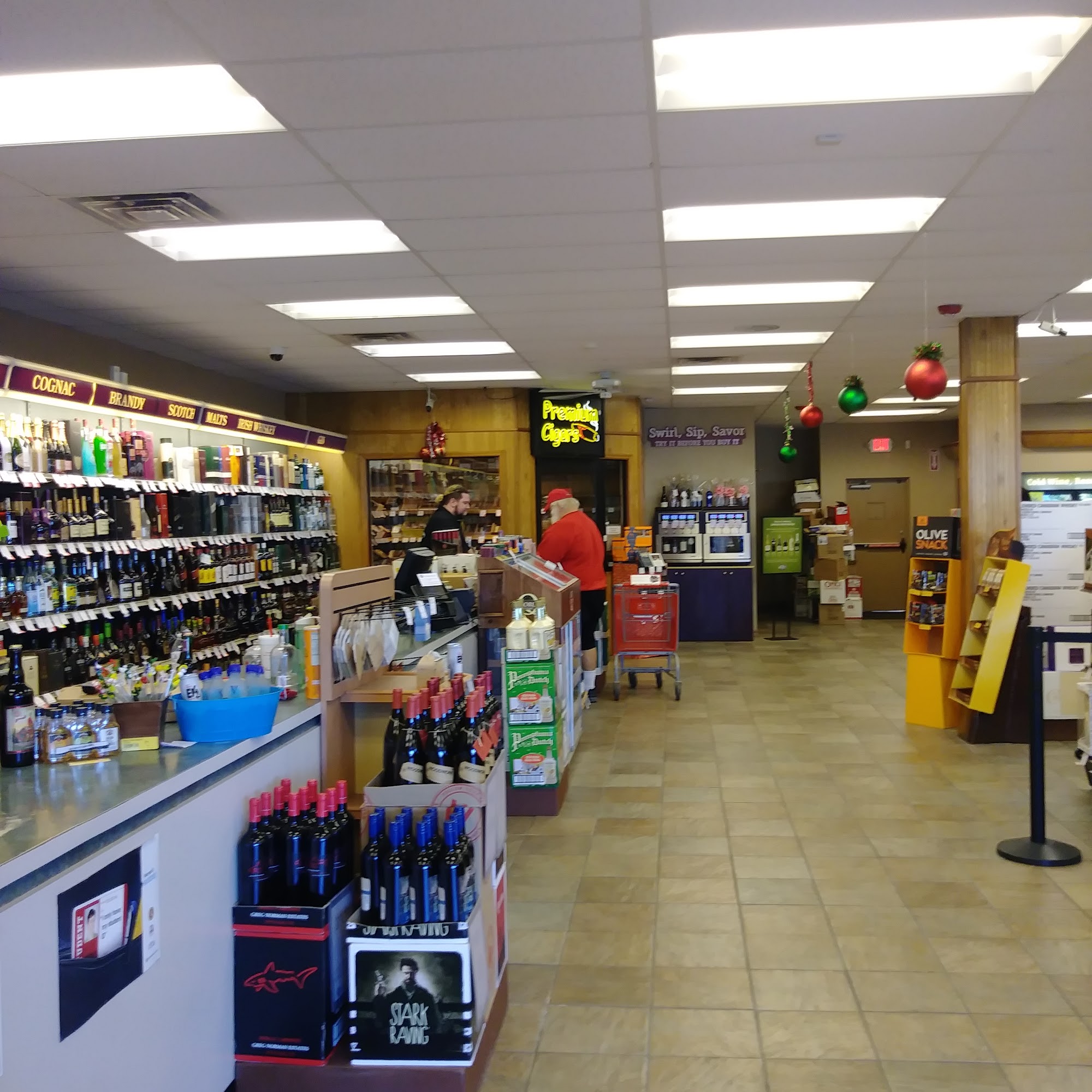 Well stocked and the sections are clearly marked by type of wine or liquor in each section. That really helps in getting you in and out quickly without searching too hard or trying to find help.