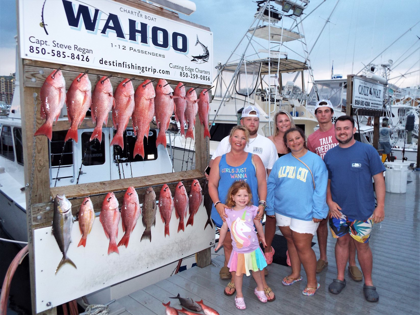 Cutting Edge Charters Inc. is a family owned and operated corporation registered and licensed in the State of Florida since 2006 for the operation of the Charter Boat Wahoo which carries 1 - 12 passengers as recreational fishing-for-hire vessels in the Gulf of Mexico from the Port of Destin, Florida.