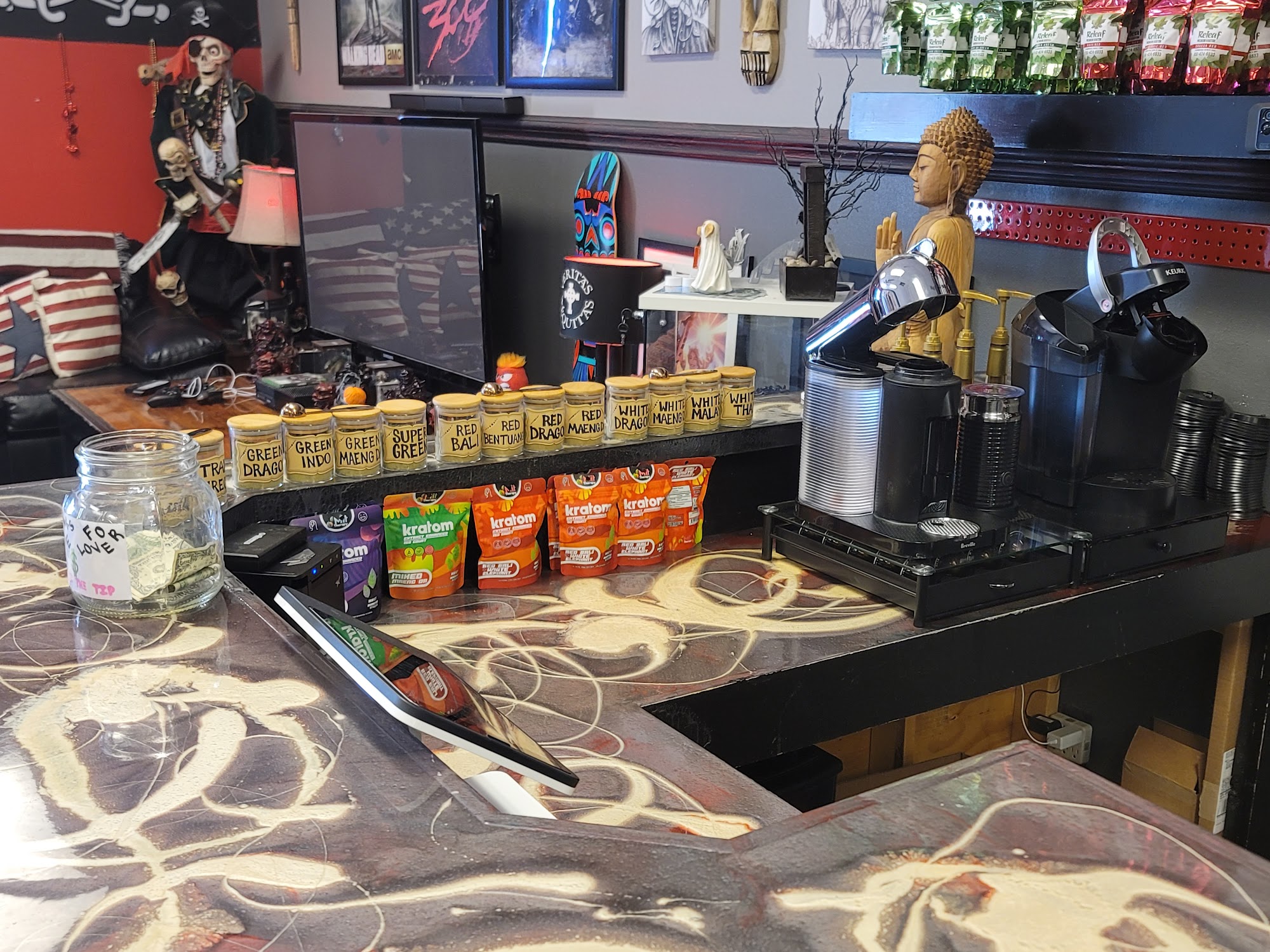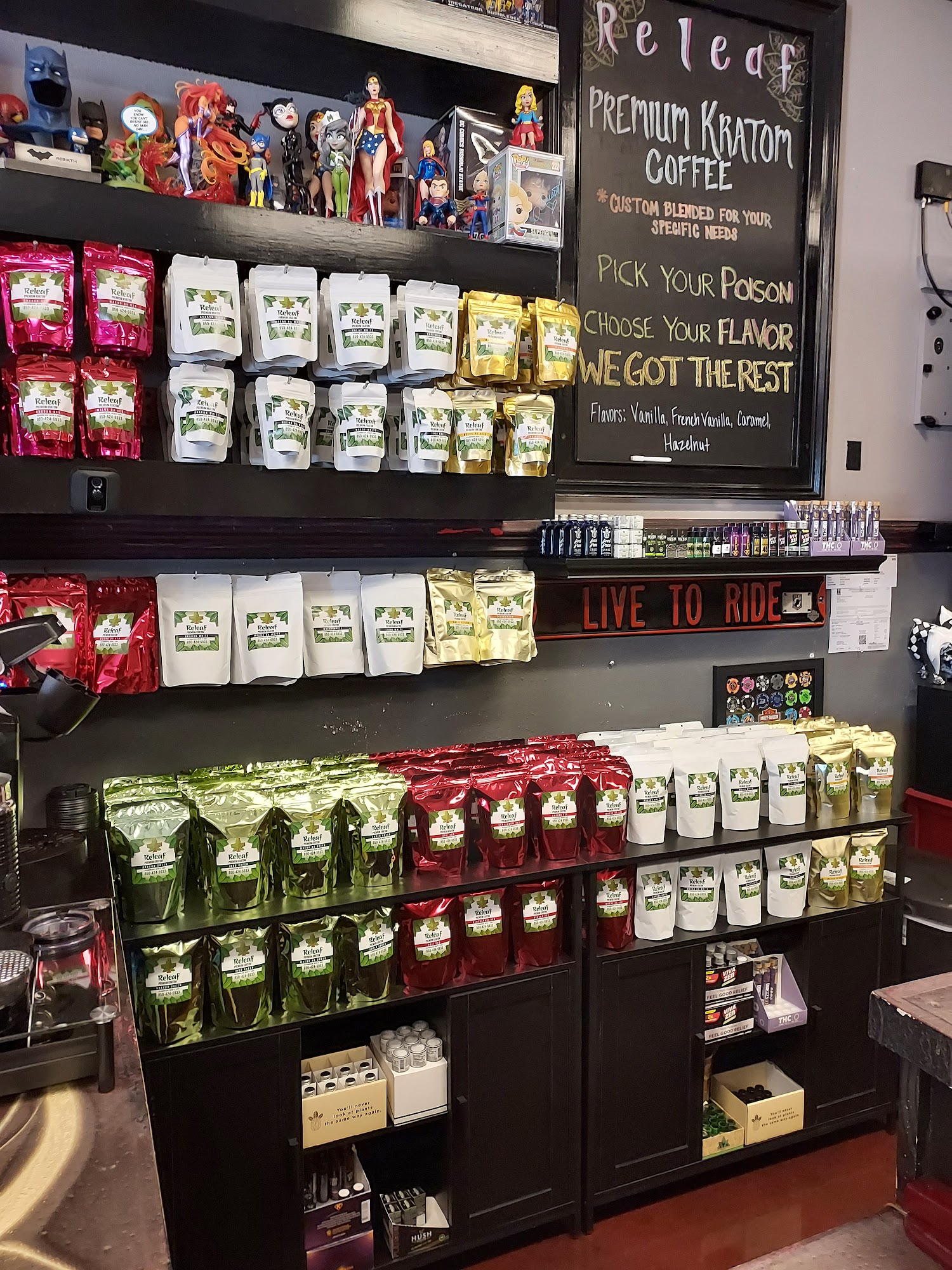New and MUCH improved shop operating alongside Vapor Master, in the Target shopping center. We specialize in offering the absolute best organic Kratom on the Emerald Coast and are the ONLY shop selling products from a supplier that is 100% backed by the American Kratom Association. Our focus is to find what will work best for YOU. After a few questions or short conversation, we will make sure that YOUR experience is personalized. YOUR kratom is YOURS, and we do not buy into the "this works for everybody" mentality, like most shops believe. Come in, check us out, chill with us a little bit, and let us show you what kratom can do for you. We now are also carrying Mud\WTR, Life Cykel beneficial mushrooms tinctures and different delta flower.