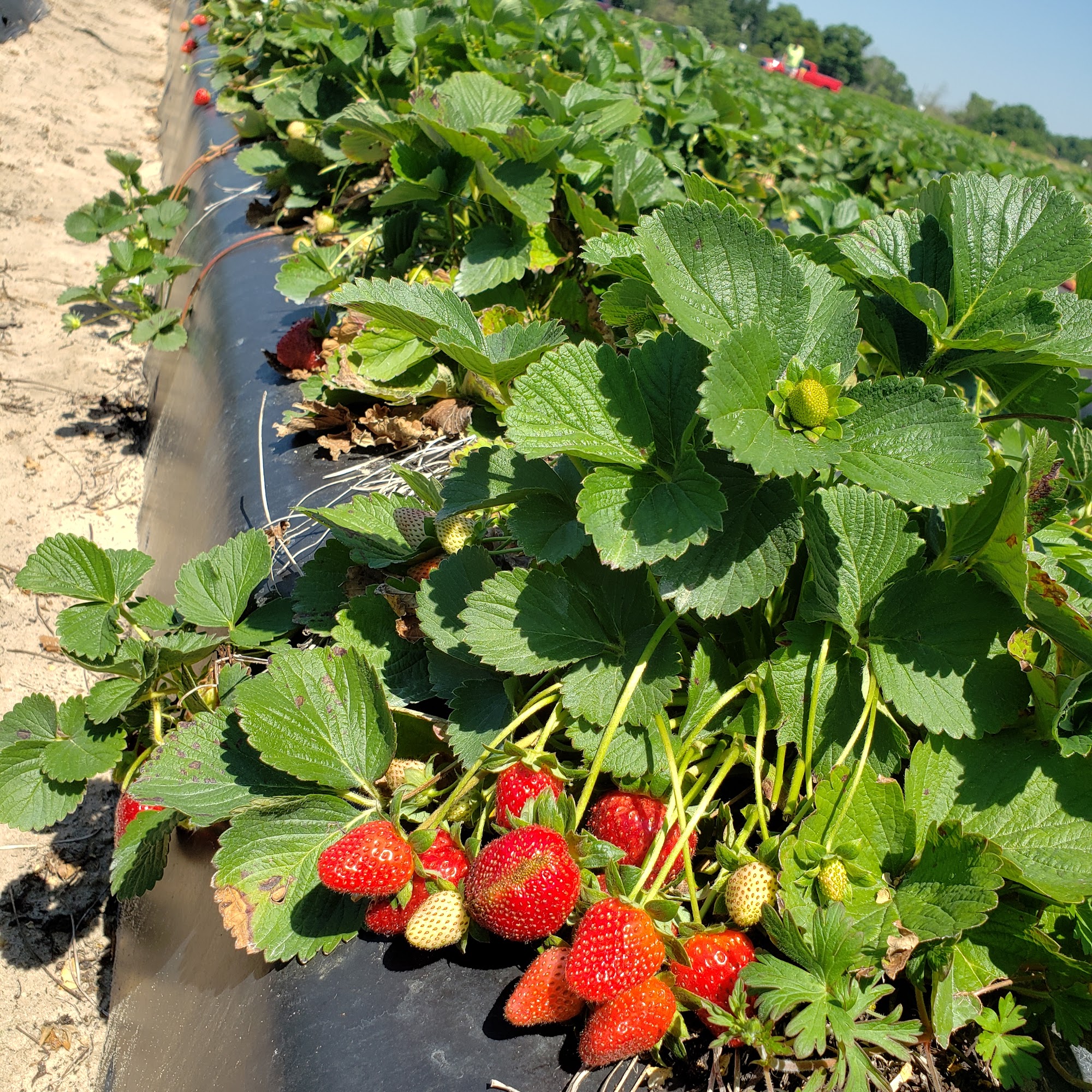 It's not open yet but when it is you can pick your own strawberries. The strawberries are big bright and delicious. Sweet as can be