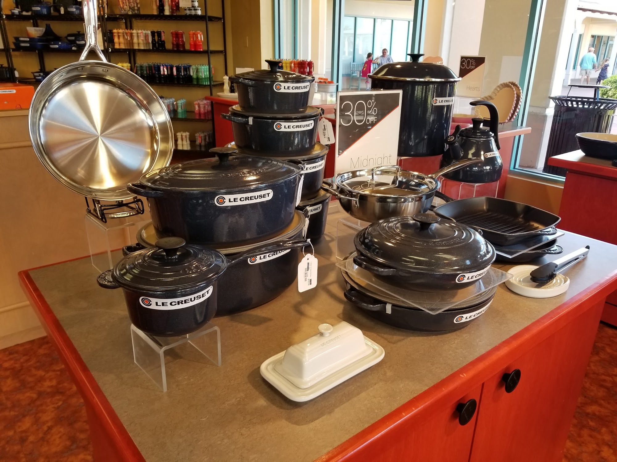 The Le Creuset Outlet Store offers excellent prices on a great selection of products, including wonderfully unique and great themed merchandise not found elsewhere. The store is always super clean and well organized. The staff is consistently knowledgeable, enthusiastic, joyful, and non-pressuring, providing very helpful service. They are a wealth of knowledge about the products and their uses. This makes the store a good place to visit for gifts and a pleasure to shop in.