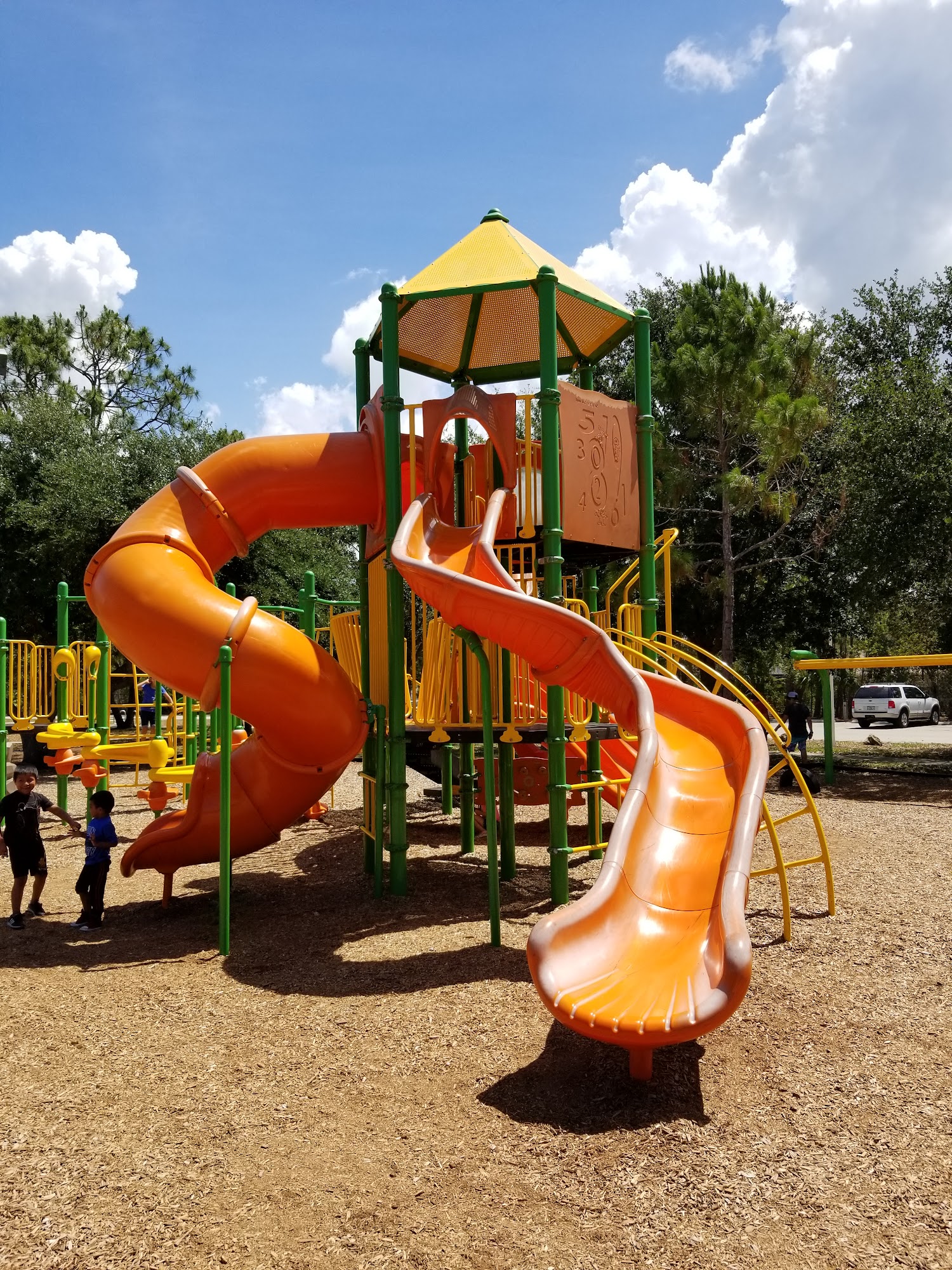 Great local park that appeals to many! Indoor gym. Fenced in dog park. Disc Golf. Playing fields for soccer. Several ponds for fishing. Covered Gazebos.