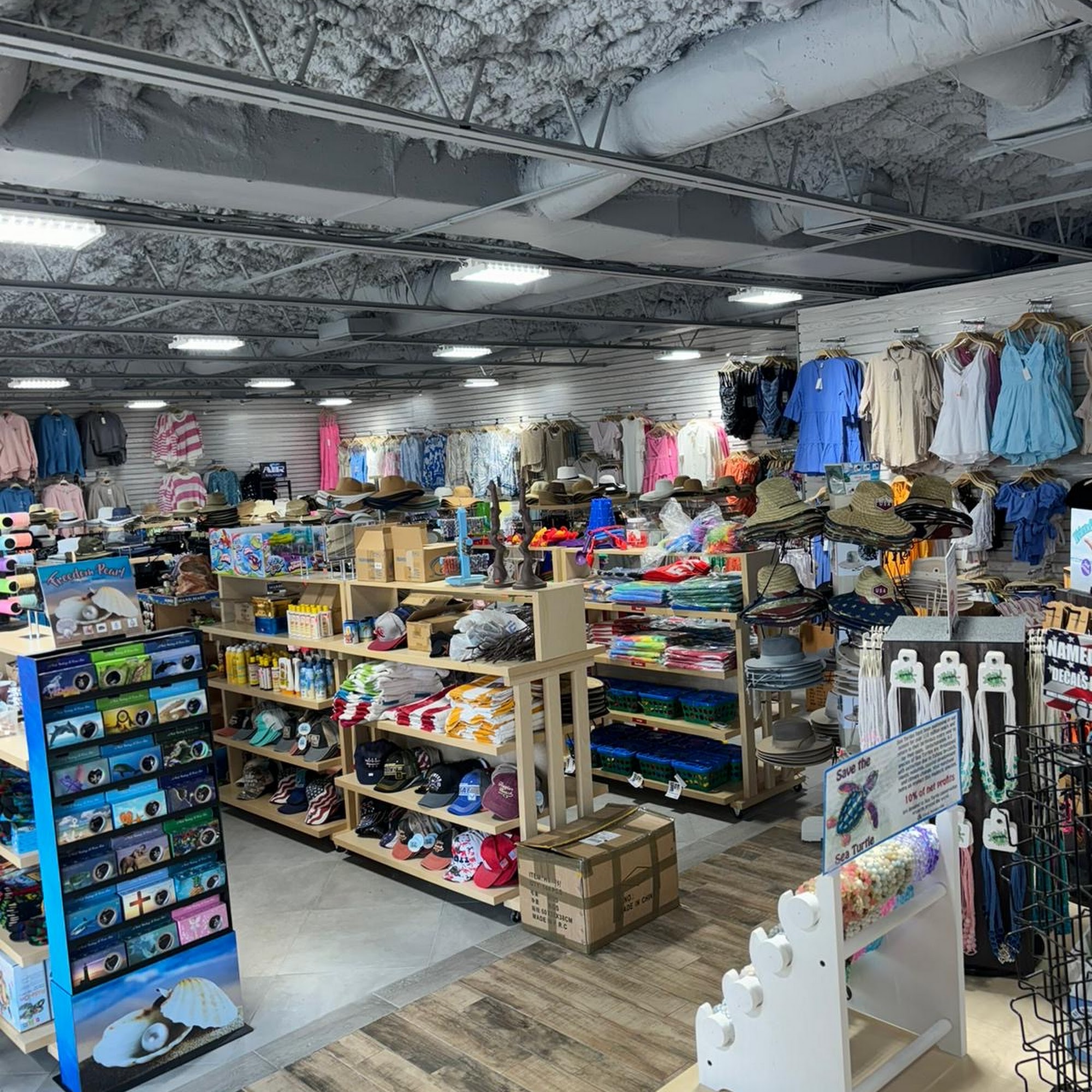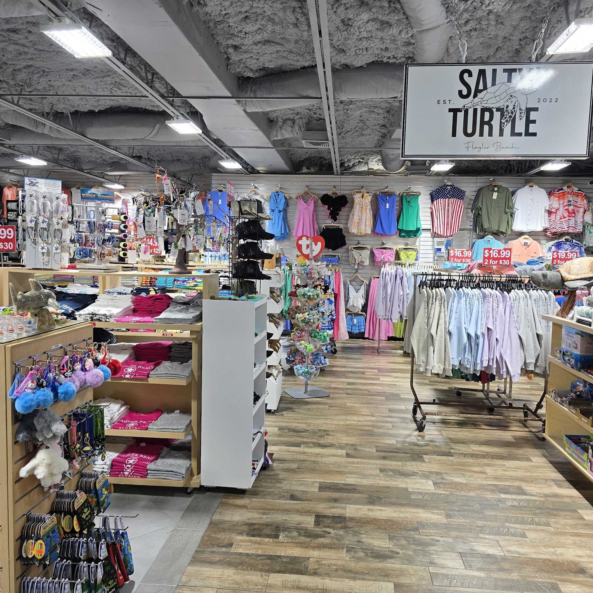 Salty Turtle Gift Shop is a clean, organized, and beautiful beachy shop. It is a quintessential, fun place with a great selection of gifts and beach needs for the whole family. The store offers tons of good quality t-shirts and other items at reasonably priced and great prices, though some gifts are a bit pricey. The friendly staff is sweet and inviting, providing excellent service like custom printing. With cute murals and photo spots, it is a top-notch, not tacky, destination. Parking is limited.