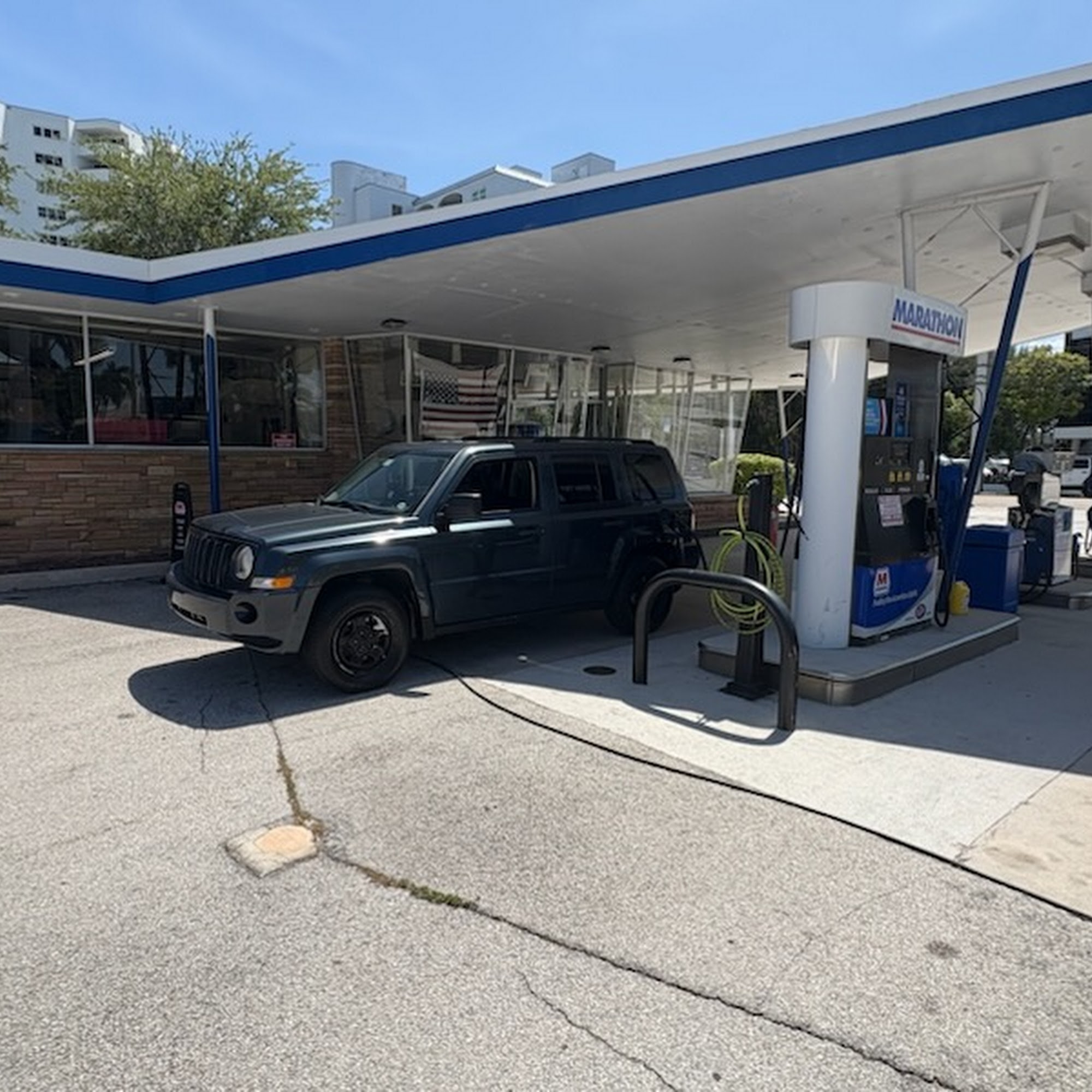 Marathon Gas is an old-fashioned service station that provides exceptional customer service. They pump gas, wash windshields, and check fluids. The staff, including Wally and Jimmy, are extremely friendly and knowledgeable, making customers feel welcomed. Although the prices are somewhat higher than other stations, the quality of service is worth it. Customers have had perfect experiences and are happy to continue coming to this family-owned business that has been around for decades.