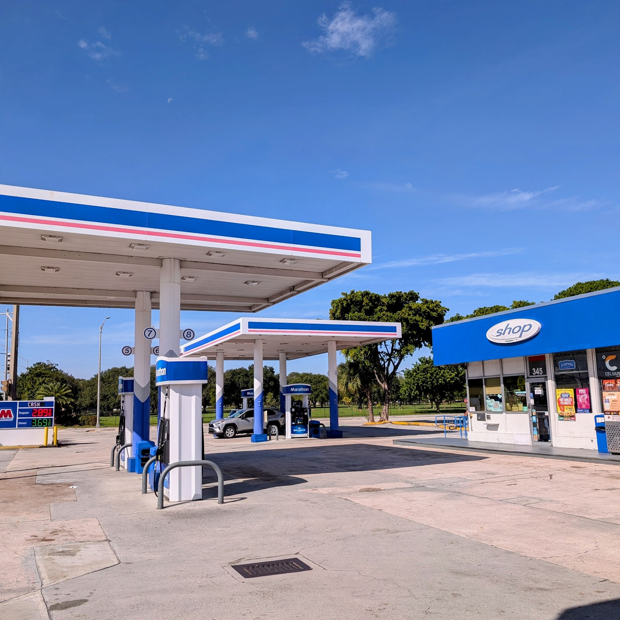 Stopped in to add gas to rental car. Nice gas stop. Area around pumps seemed cramped. Best gas priced in the area. Easy in & out