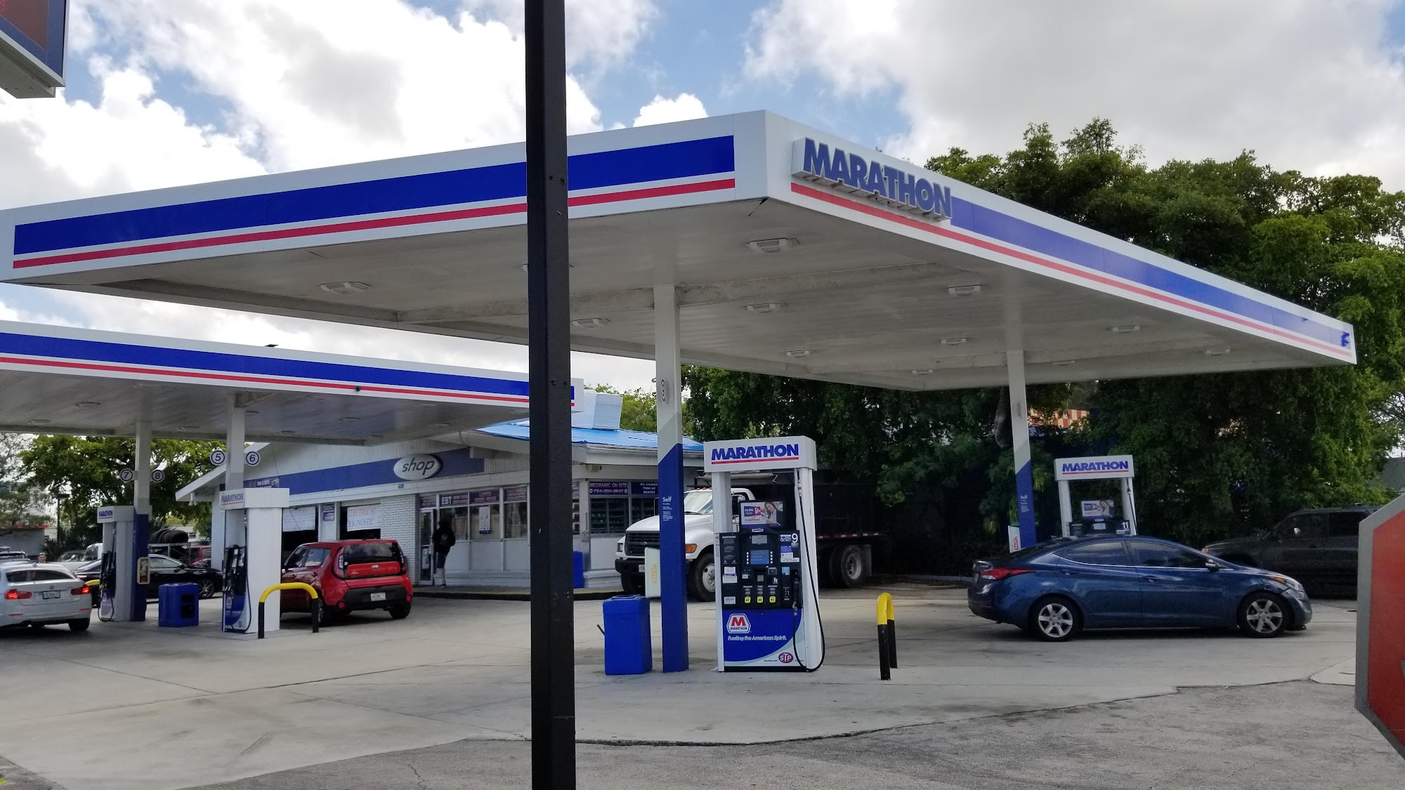 The lovely day attendant at the cashier brightened up my day and the gas price was conveniently low.V satisfied w/ the ease in service early in the a.m.!