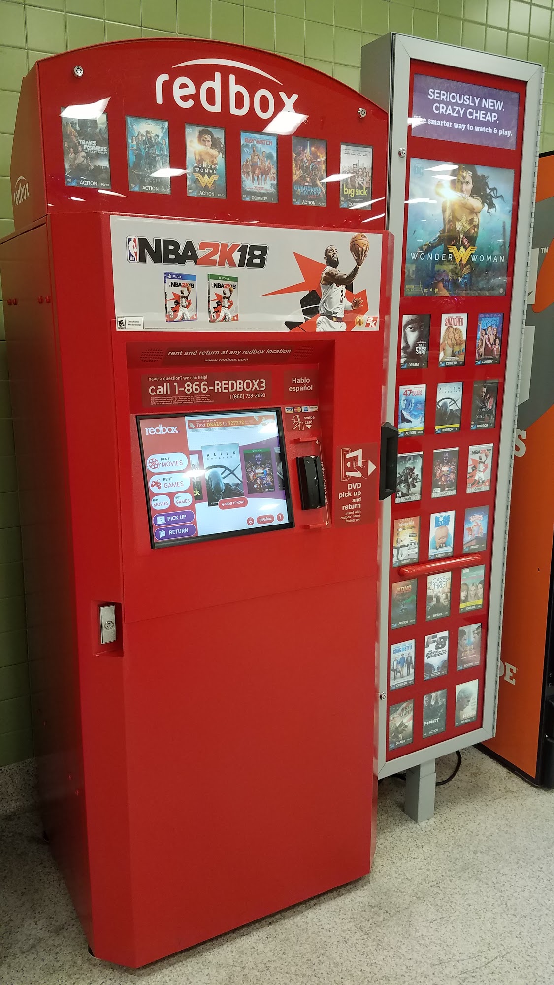 This Redbox is located outside the CVS which means that it is available 24 hours. I had no trouble picking up my reserved DVD and yes, you can browse DVDs online or with the Redbox app and reserve it so that's available when you get to the store.