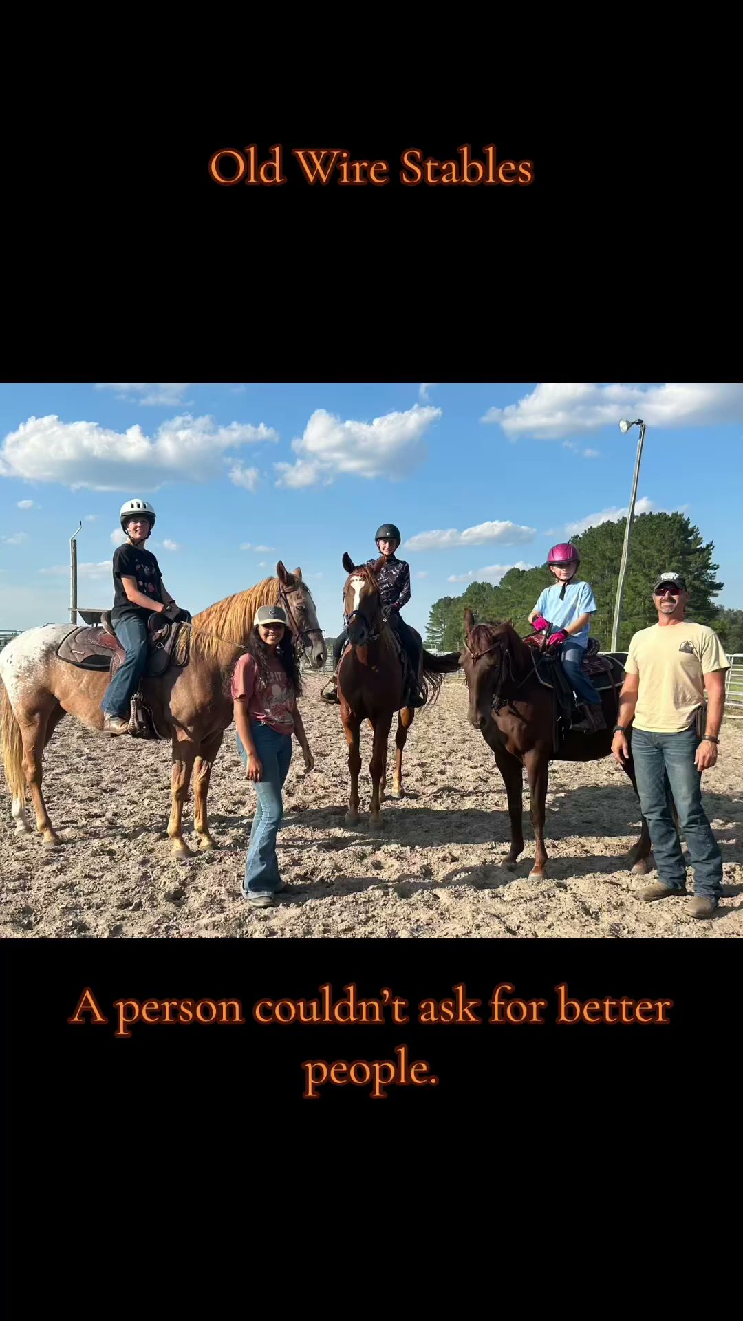 I loved my time boarding at old wire. The owners are so nice and caring about their boarders, students, and horses. They're so knowledgeable about all things horse. It really feels like family there and they helped me out a lot