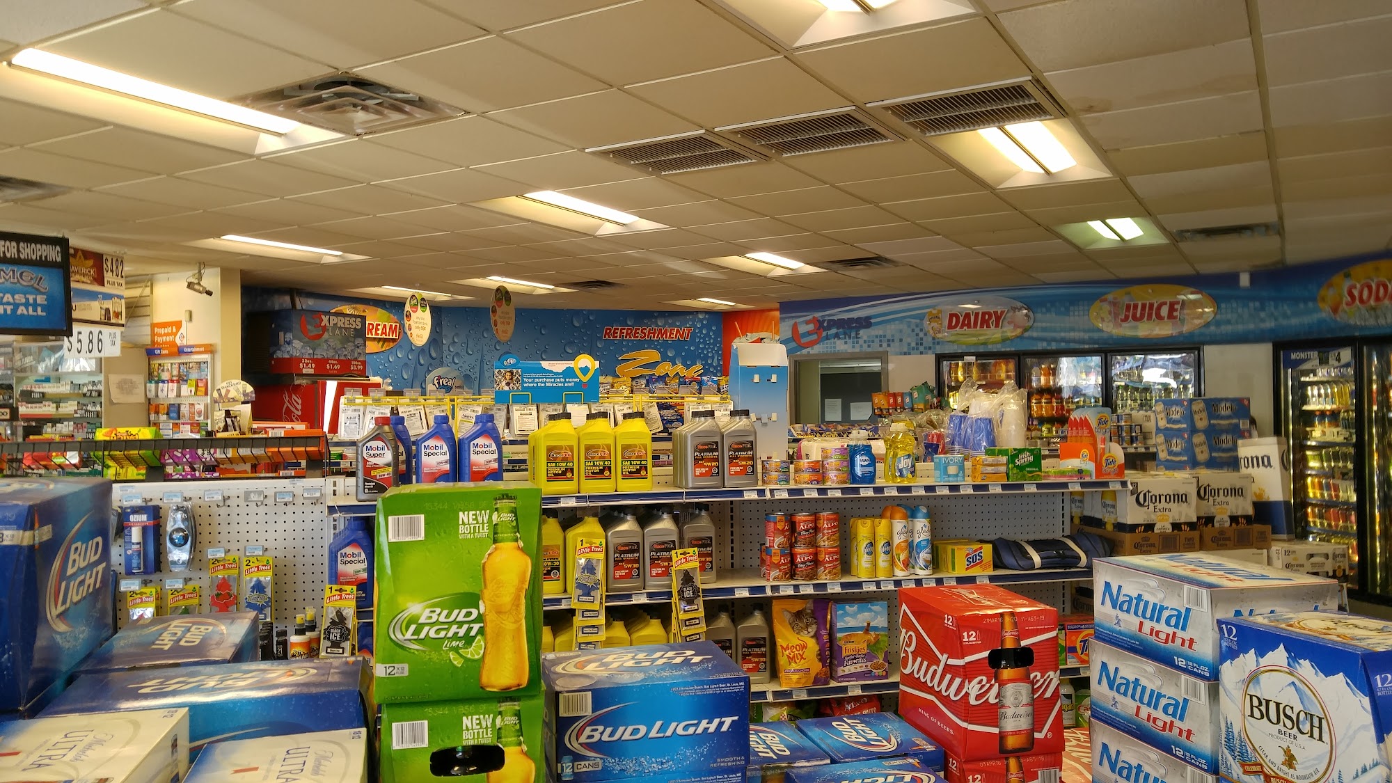 Fuel is more expensive than in town but they have cold beverages.