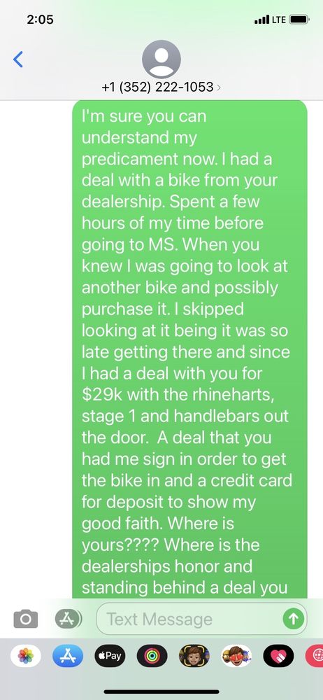Great service, Chris and Joe in sales busted ass to find the bike and color I wanted. And Jackson in parts was on point with the parts I wanted also. Great job by all...