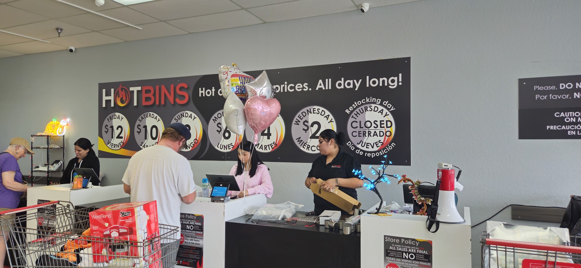 Hotbins brings the fun and excitement of one-price bin store shopping to Lake Worth. It is not a basic Amazon returns store, as shoppers can find overstock, liquidated, and return items, including electronics, home decor, kitchen items, lighting, clothing, and shoes. It is described as an excellent place to shop and spend time, feeling like a true treasure hunt or a pirate’s chest where you never know what you will find. The store is neat with lots of parking, and the staff are super friendly, helpful, patient, and like deal-guides. Shoppers report finding many gems, great deals, and brand new items at jaw-dropping prices, often leaving with a car full. Prices drop throughout the week, starting at $10 on Friday down to $1 on Wednesday. The environment is very comfortable and includes great giveaways and specials.