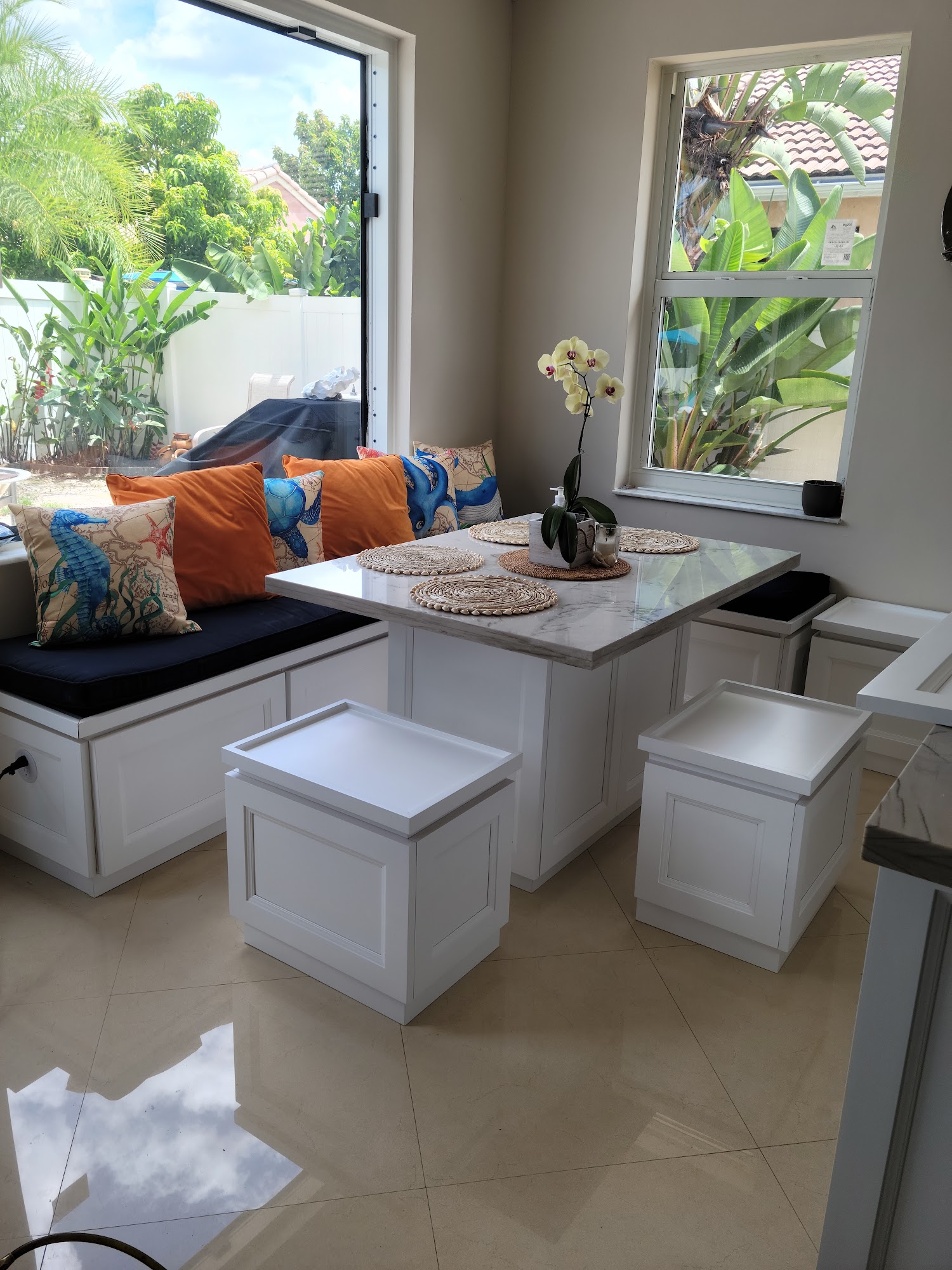 They did a fantastic job with kitchen cabinets look beautiful. The work is complete within the quoted timeline and very satisfied people highly recommend them. Grateful for excellent work, serious, punctual, highly responsible people. Their professionalism, input on design, and overall service are excellent. Punctuality is excellent and prices on custom work. They installed laundry storage, quartz countertops, bath vanity tops and new bath storage cabinets.