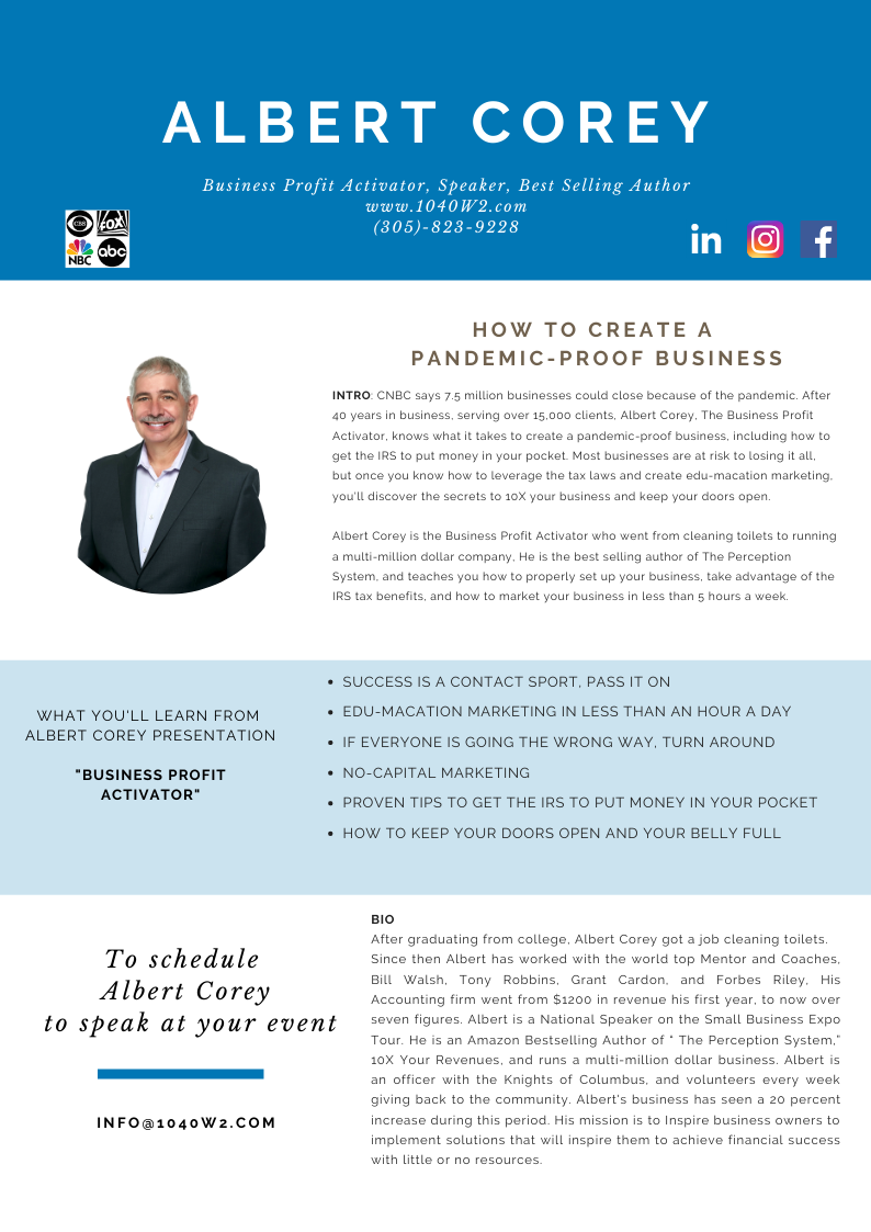 Albert Corey is the best CPA that we have ever worked with. He just not only has the vast knowledge with regards to tax whether it is your personal or business but he will also teach you and hold your hand in the process. He is always available for his clients. He saved us a lot of money and we will definitely use his services... read full comment