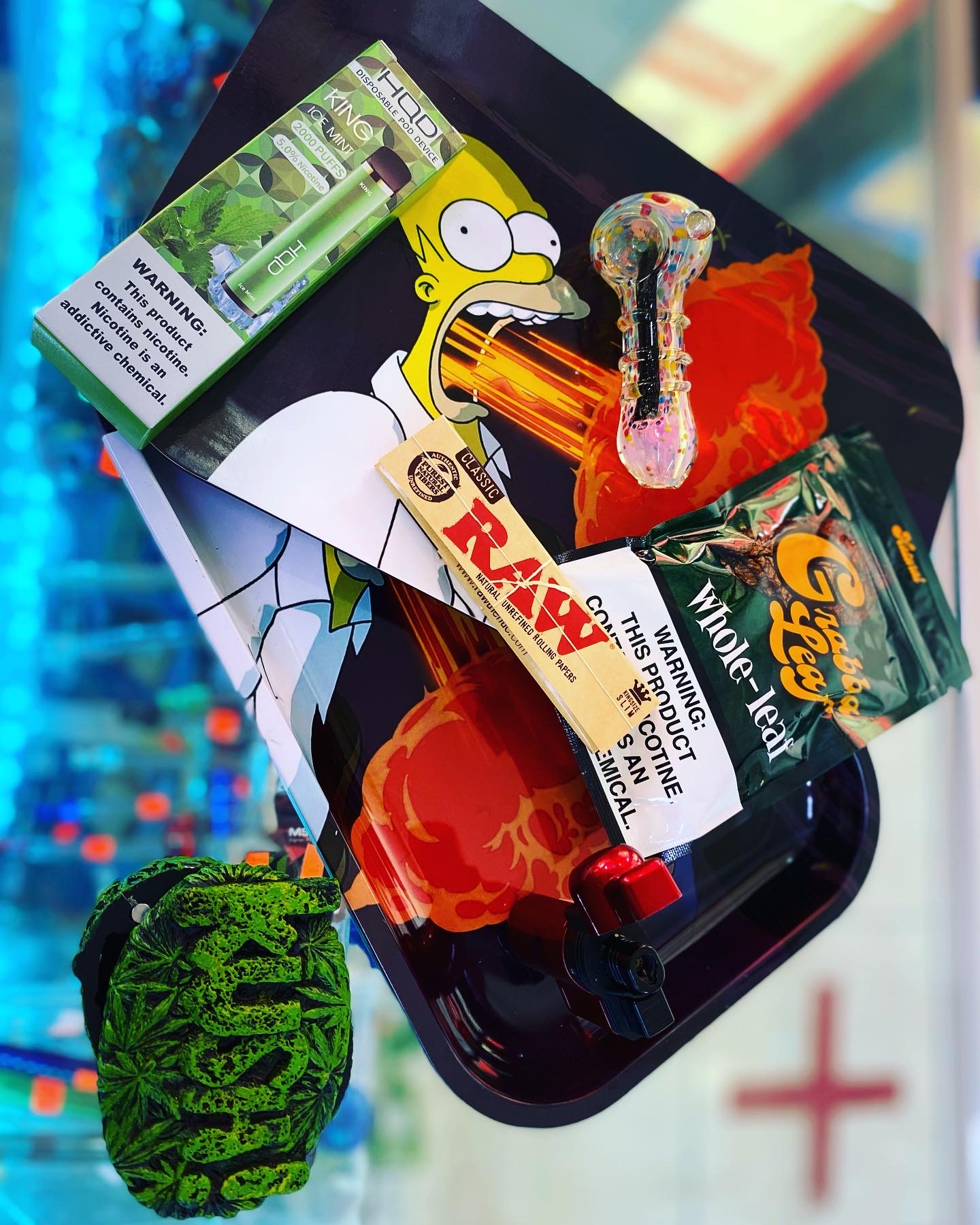 Super clean place. Easy access to all smoking essentials !
