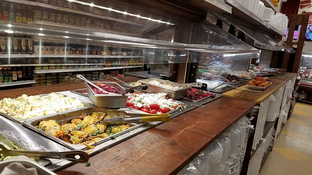 Ample parking. Excellent food. Drive-thru, and the price is per pound of food. Varied, hot, and fresh. Excellent quality. The market is very varied, with European products.