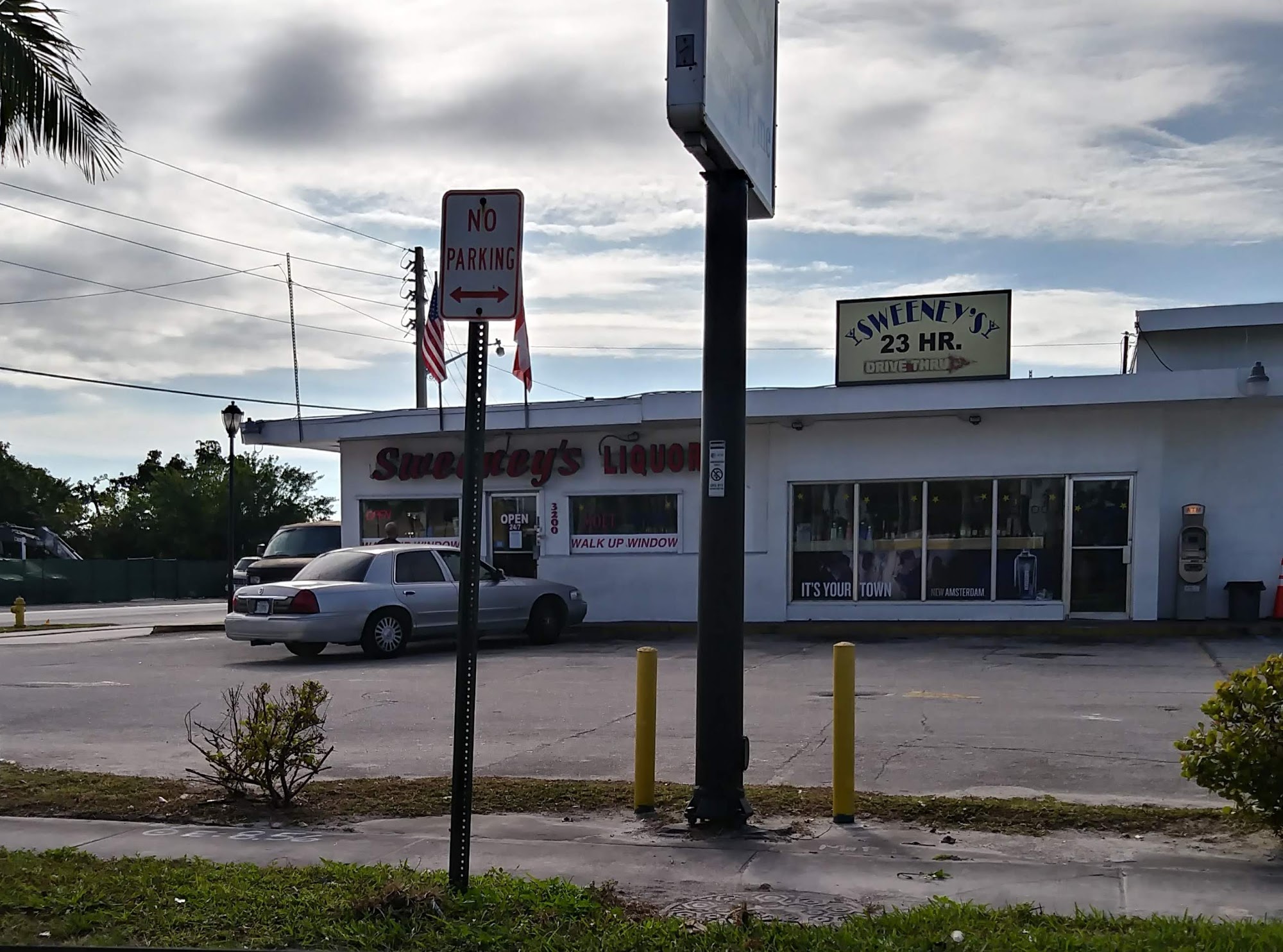 Sweeney's 23 Hour Liquor Store is a super clutch and convenient location, open 23 hours a day. It serves as a life saver when other stores are closed. Customers can use the drive-thru, walk up, or walk in. The drive-thru is noted for fast service with no waiting and good customer service. It is easy to locate, just down the street from I-95. The convenience does come at a higher cost, however.
