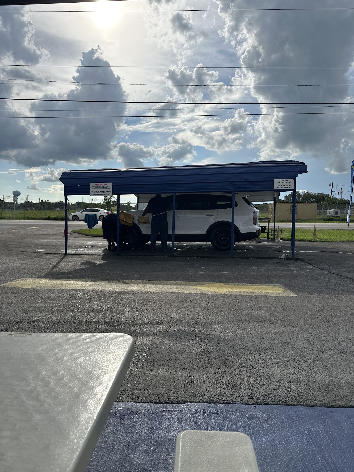 They are great at cleaning the inside and outside of my car. Also, they have a fair price and they have a waiting area with shade to sit and wait. I can also buy a snack in case I get hungry, they sell snacks.