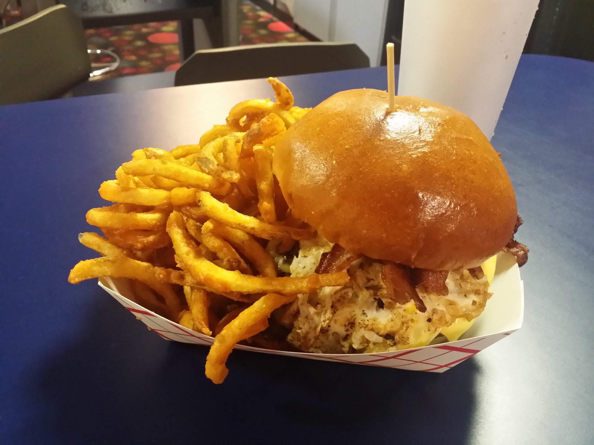 Great grill, inexpensive, clean, and a great place to hang on base