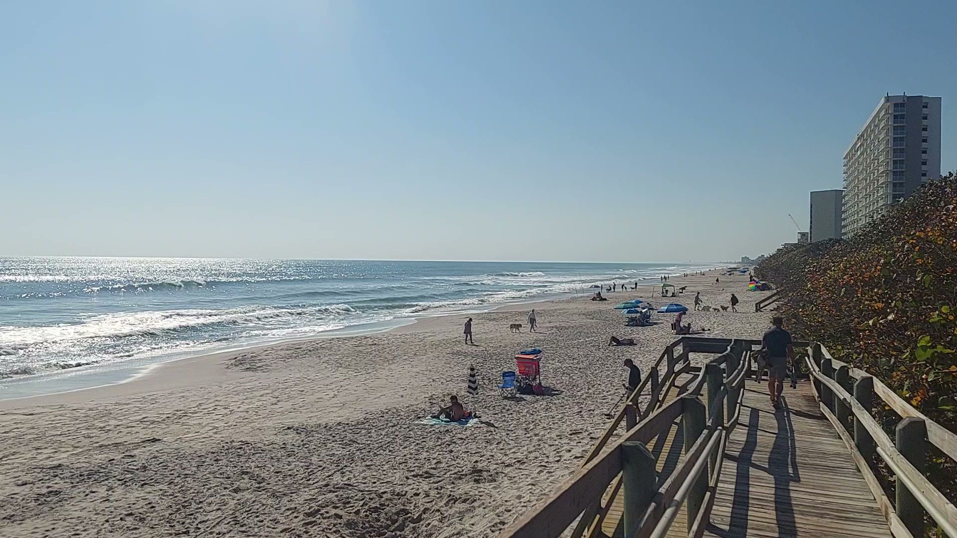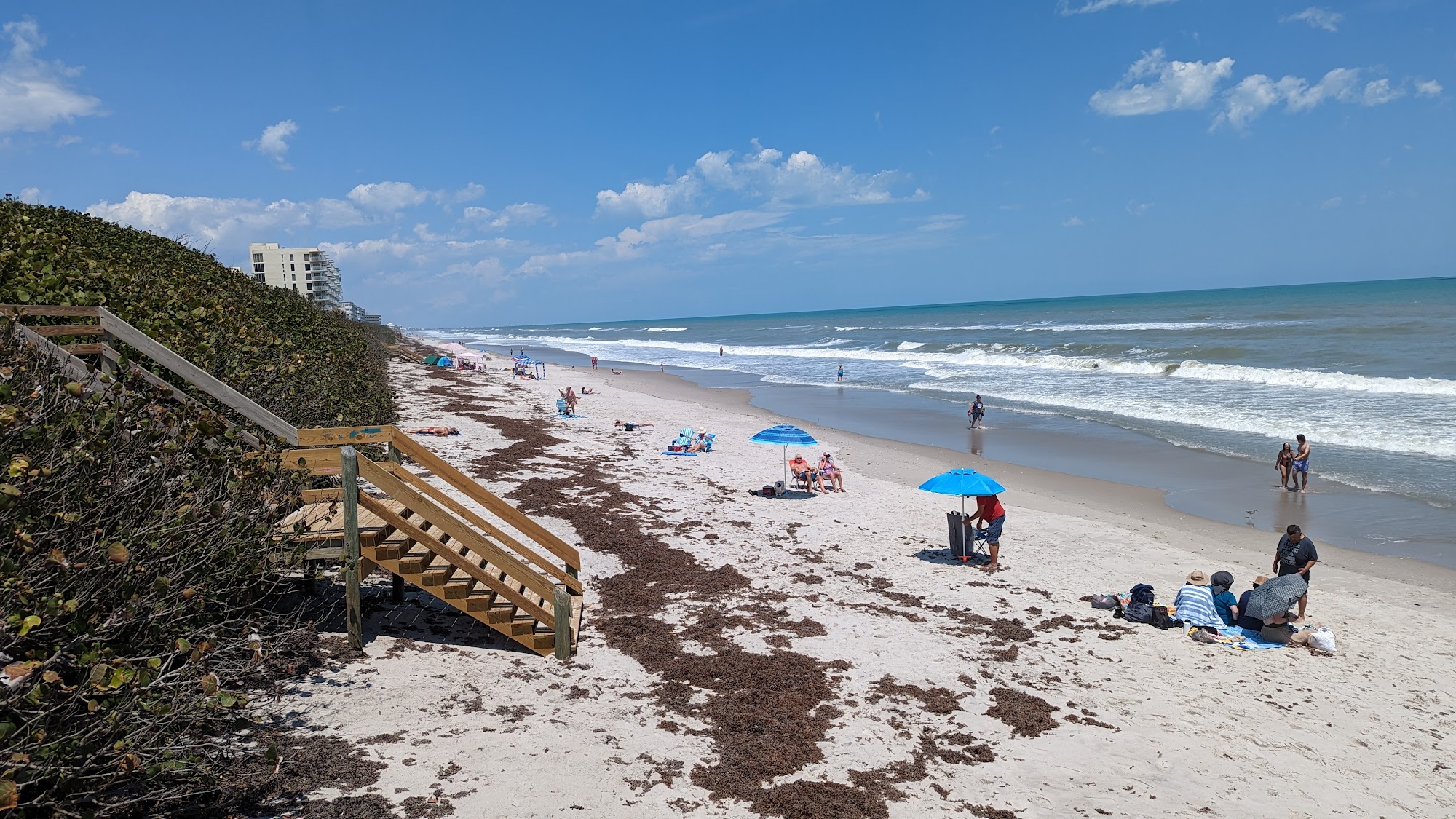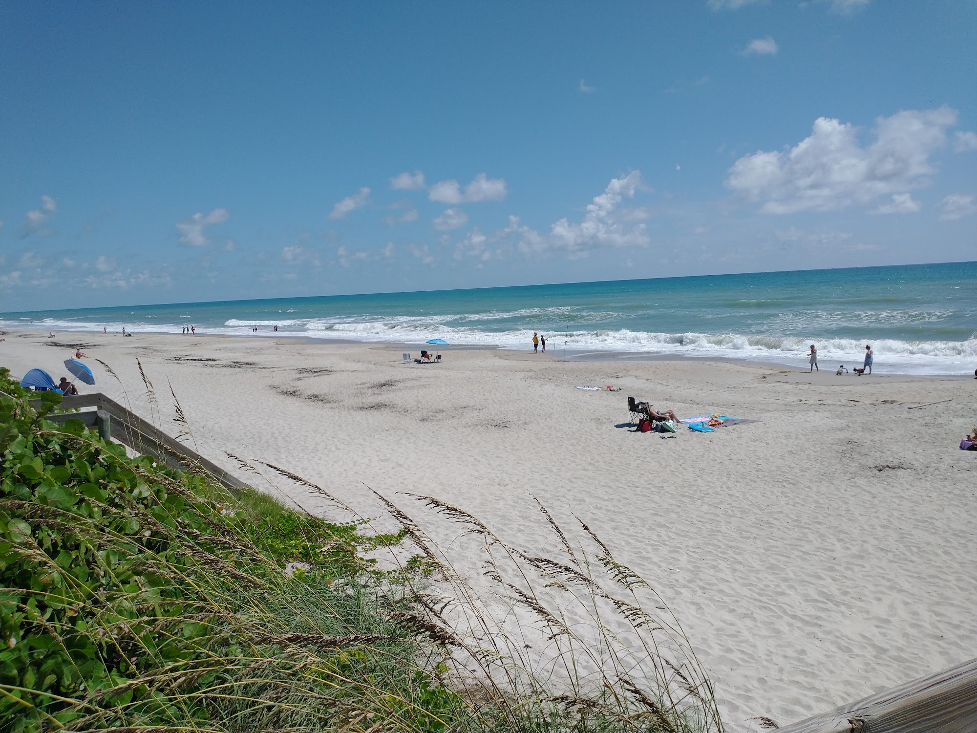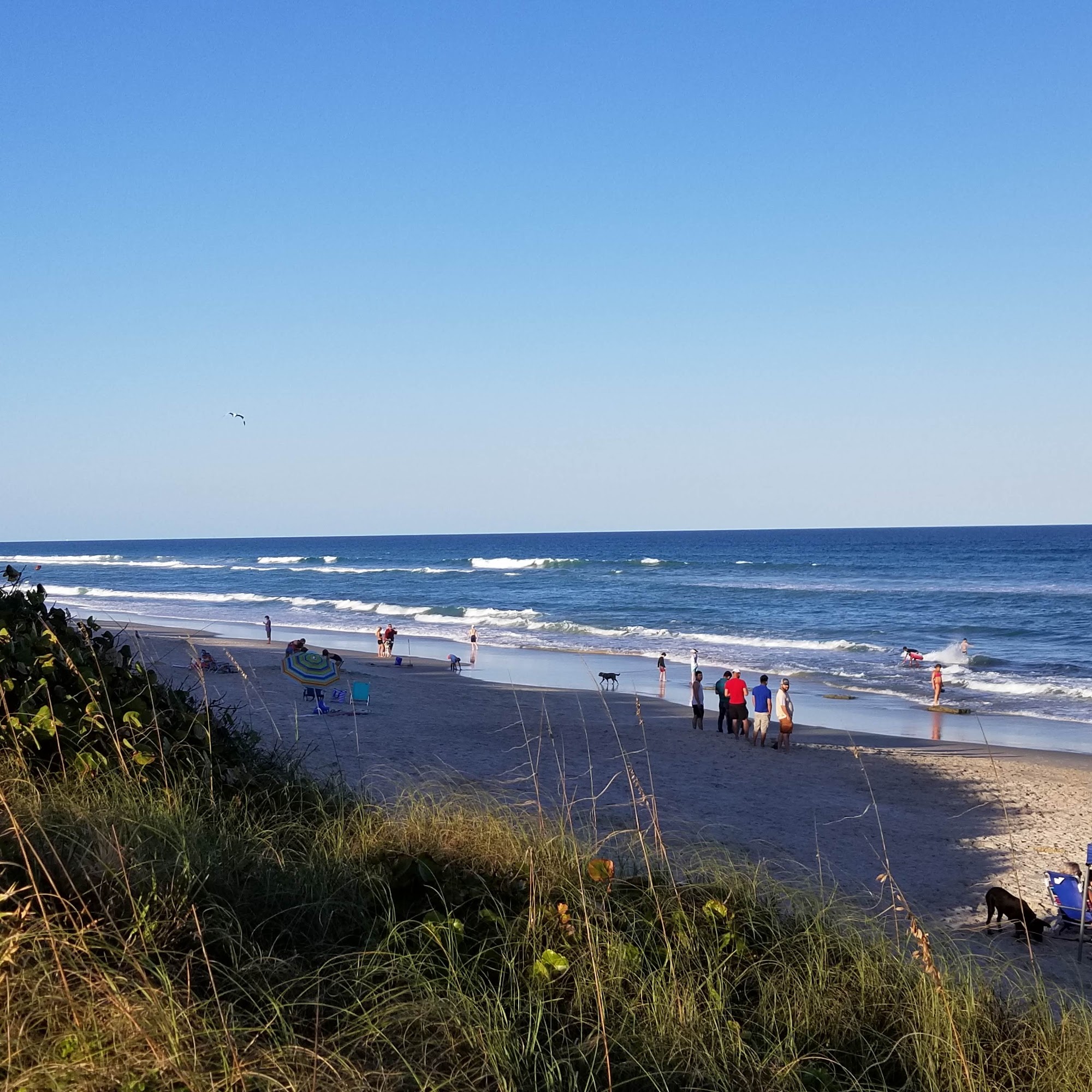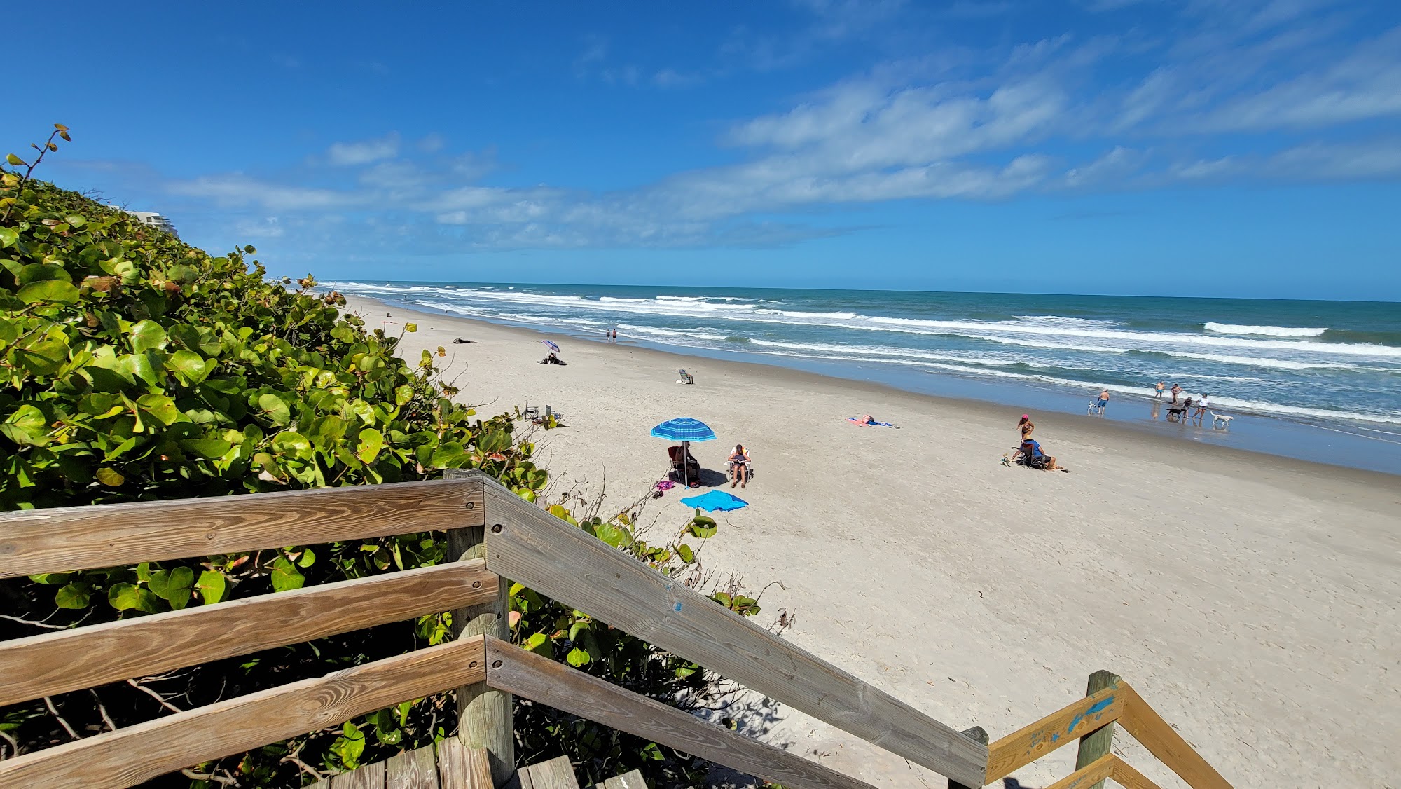 Canova Beach Park is a 9.1-acre community beach park that offers a range of amenities for visitors. The park includes a small pavilion, grill, picnic shelter, benches along the crossover, restrooms, drinking fountain, and outdoor showers. One of the three dune crossovers is wheelchair accessible. The park is dog-friendly, with all dogs required to be on a leash and wear tags showing their current license and vaccinations. While the restrooms may not be the best, they are functional, and the outdoor showers provide a convenient way to rinse off after a day at the beach. The park is described as peaceful, with a clean beach and plenty of parking, including handicap-accessible spots. Visitors can enjoy watching the dogs playing in the water and on the beach, and the low tide is said to be the best time to visit, as the surf breaks better and the cocina rock reef is exposed.
