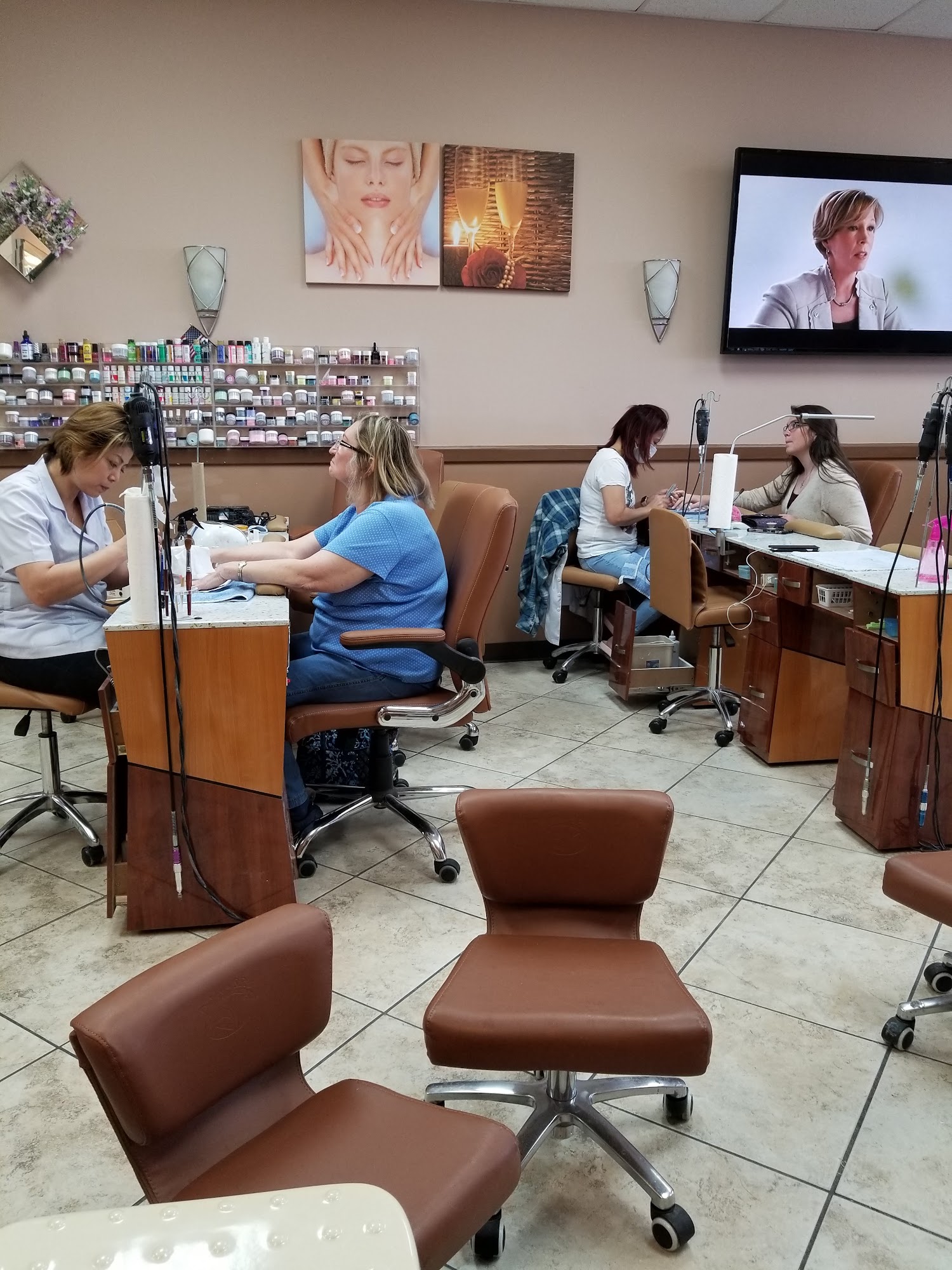 Great atmosphere! so friendly with the customers around me! went for some girl time with my grandma and she got gel, took there time and did a beautiful job!