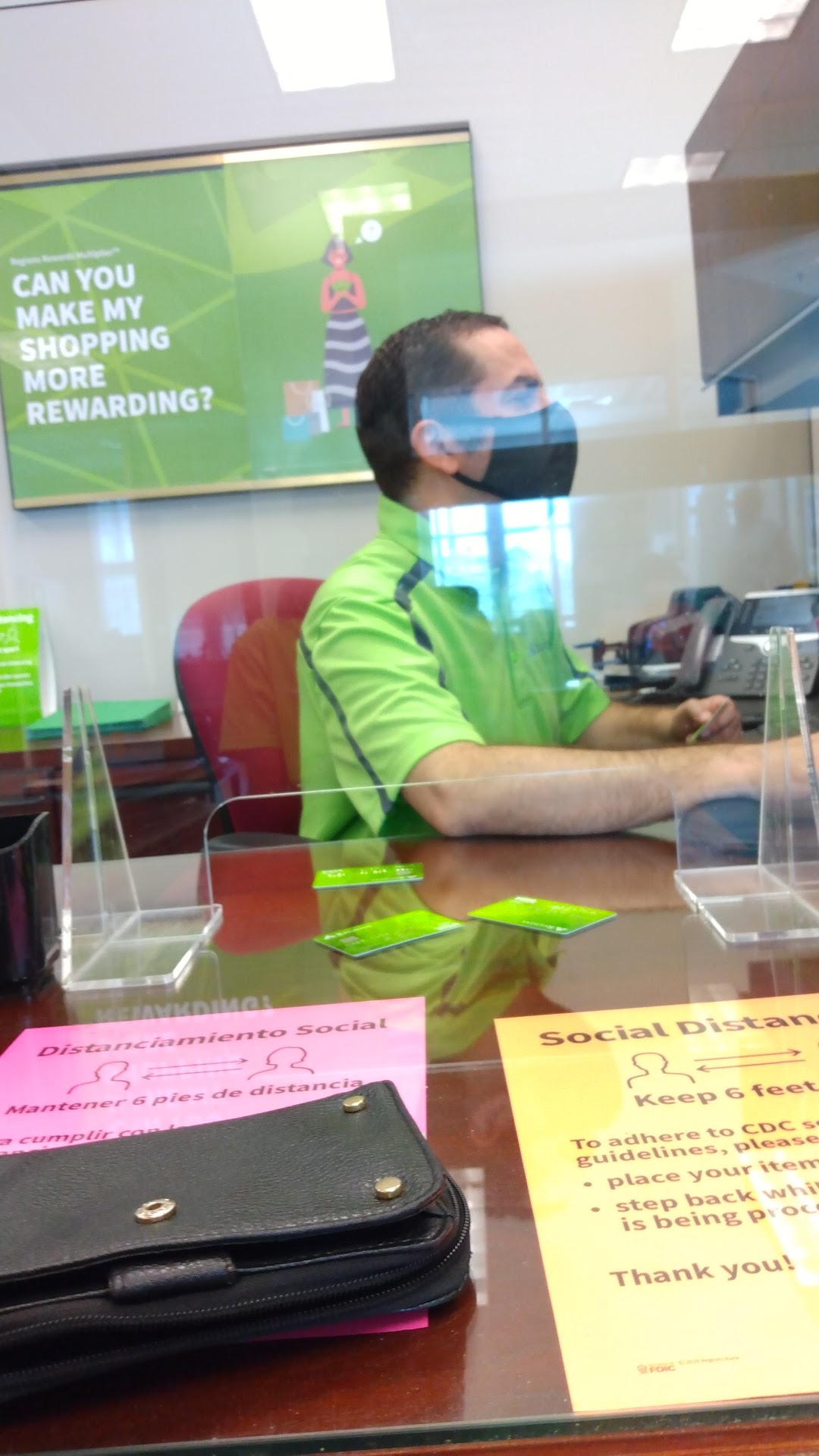 Service was top notch. I felt like I was the only customer that mattered. I was met at the door, me and my walker was assisted to the clerks station my new card was printed and then I was assisted out. Yeah GO. REGIONS