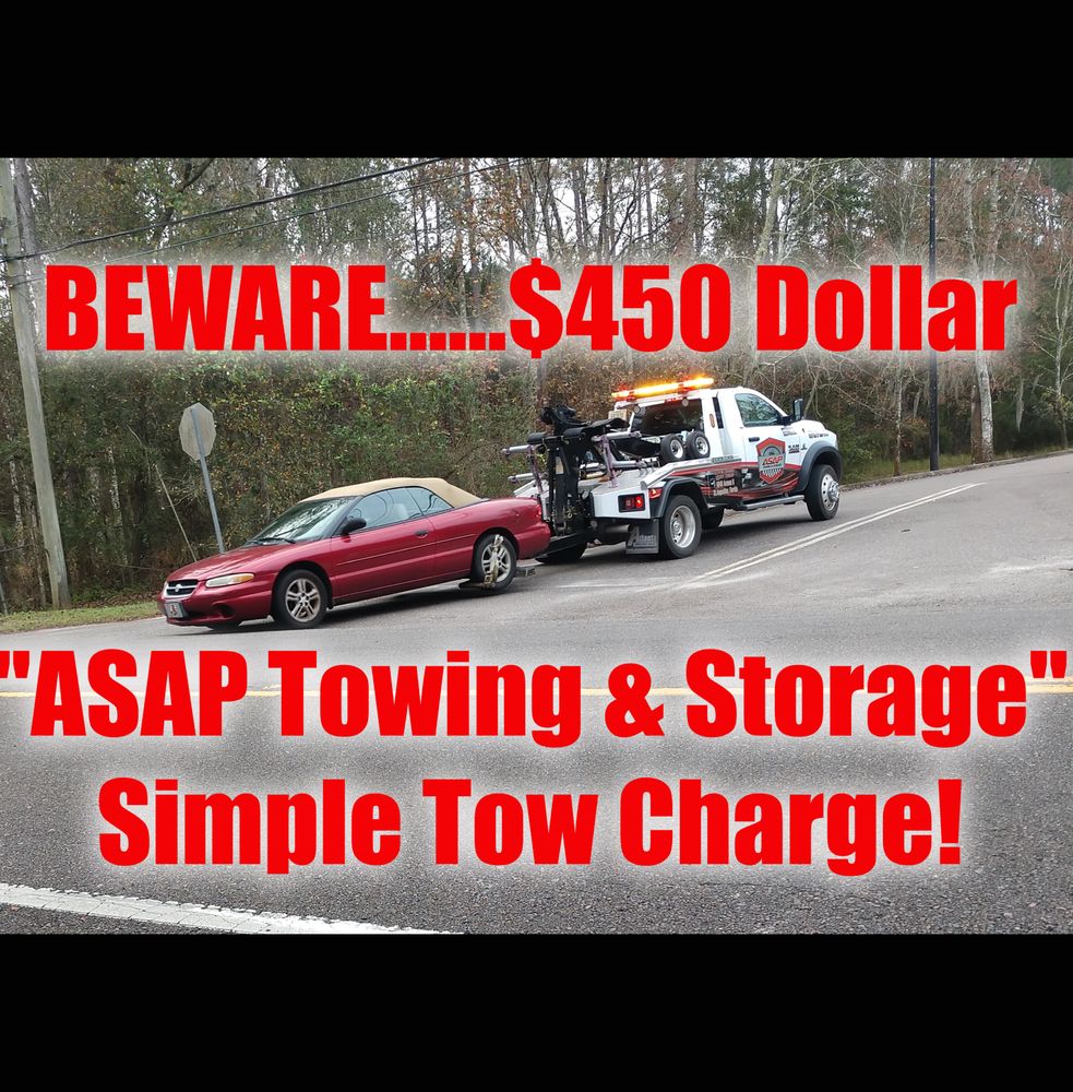ASAP Towing & Storage is a reliable 24-hour towing company serving Jacksonville, St. Augustine, and along I-95 & I-10 in Northeast Florida. They provide local and long-distance towing, heavy hauling, recovery, roadside assistance, vehicle auctions, and port delivery services. Customers consistently praise their fast response times and professional service. Drivers like Shane and Stephen are often highlighted for their kindness, patience, and going above and beyond to help in difficult situations, such as breakdowns in dangerous locations or in bad weather. Many reviews emphasize the company's honesty, reliability, and caring attitude, contrasting them with other companies that are seen as rude or disorganized. The office staff is described as friendly, knowledgeable, and helpful, contributing to a positive overall experience. Customers feel confident trusting their vehicles and even their safety with ASAP Towing’s drivers, noting their professionalism and safety-conscious approach. The company is appreciated for its transparency and genuine care, always showing up and doing their best despite the challenging nature of roadside emergencies. Several reviews mention how the team turns stressful situations into manageable ones, turning important tasks into their priority. Overall, ASAP Towing & Storage has earned a reputation for exceptional customer service, trustworthiness, and dedication, making them the preferred choice for towing and roadside assistance in the area. Their commitment to quality and care makes them stand out as a top towing service in Northeast Florida.