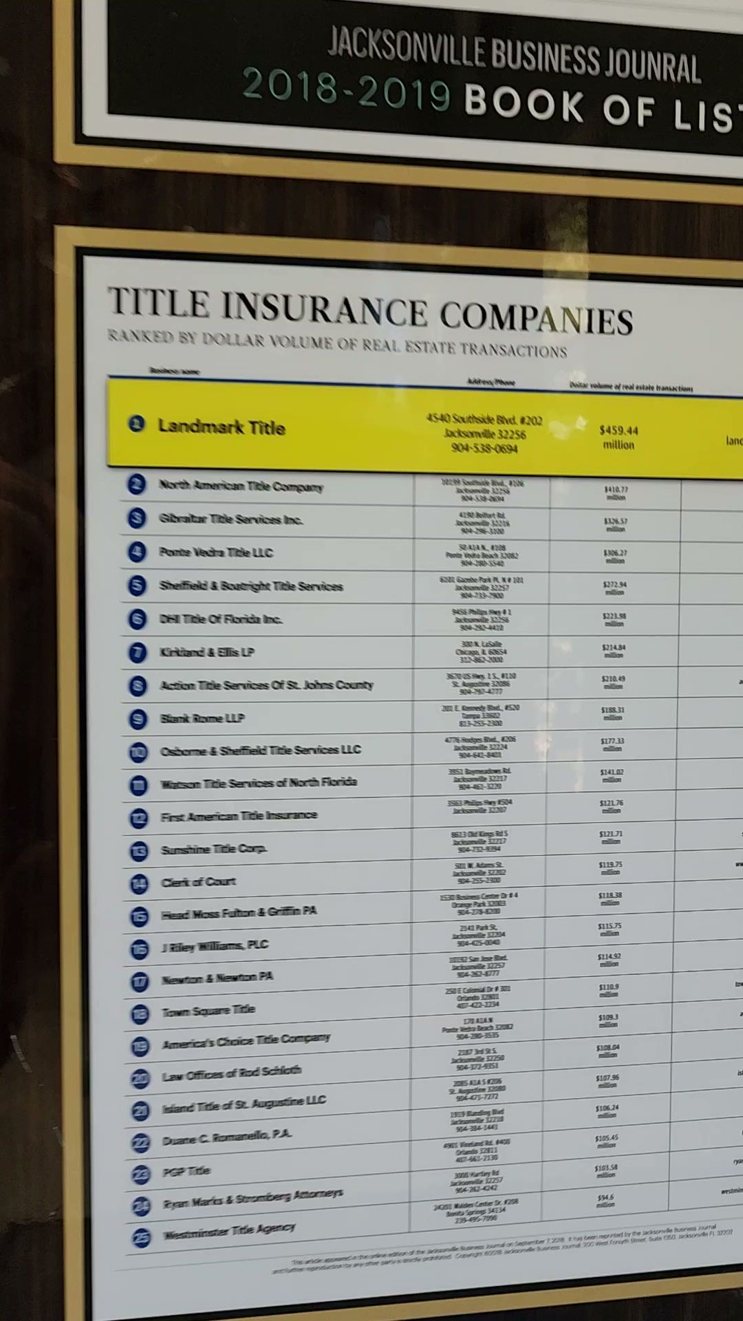 Landmark Title is an attorney-owned title company serving the Northeast Florida area, known for its integrity and outstanding customer service. The company ensures fast and courteous service from contract to closing, prioritizing the protection of homes. Engaging an attorney-operated title company like Landmark Title is a wise choice, as it provides immediate legal support if any issues arise during the closing process. Clients consistently praise the knowledgeable and friendly staff, highlighting their professionalism and can-do attitude. Reviews mention the seamless and efficient service provided by the team, with special recognition for the thorough communication that keeps all parties informed. Clients appreciate the personal touch, with staff members going the extra mile to explain each step of the process and provide updates proactively. Whether working with Realtors, lenders, or home buyers and sellers, Landmark Title delivers a smooth closing experience. The team’s commitment to excellence and compassionate service has earned them a loyal clientele, with many recommending them for real estate transactions. Overall, Landmark Title stands out for its dedication to client satisfaction and exceptional service quality.