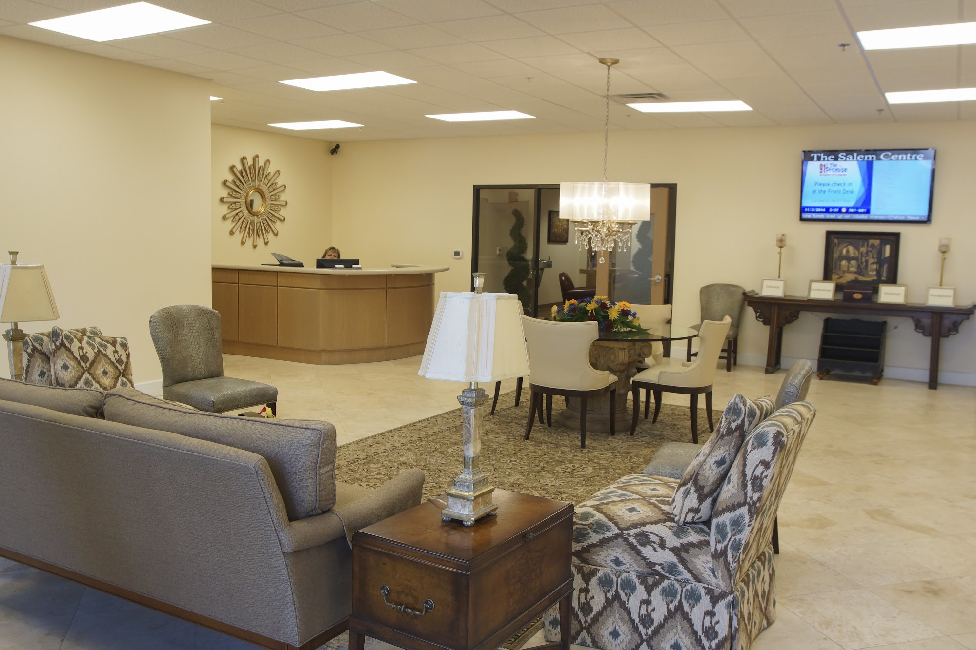 Wonderful conference room for a few hundred people. Has all the tech built in. Comfortable seating for meetings. Stage and all the stuff needed for group settings.